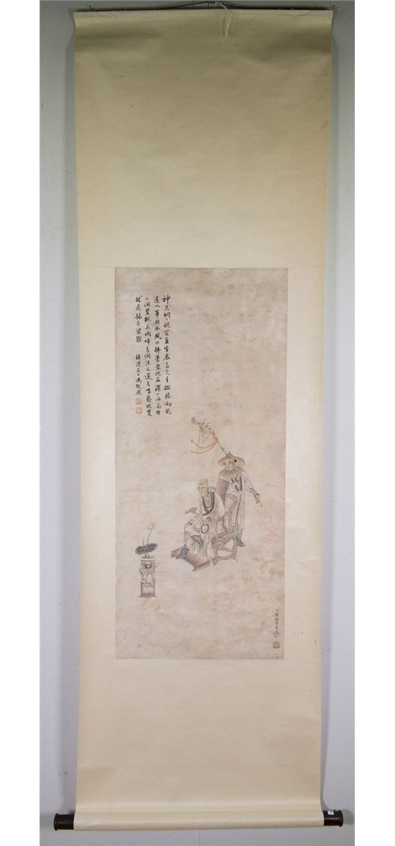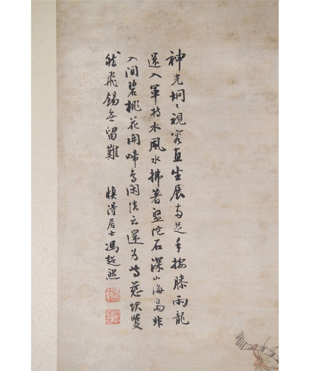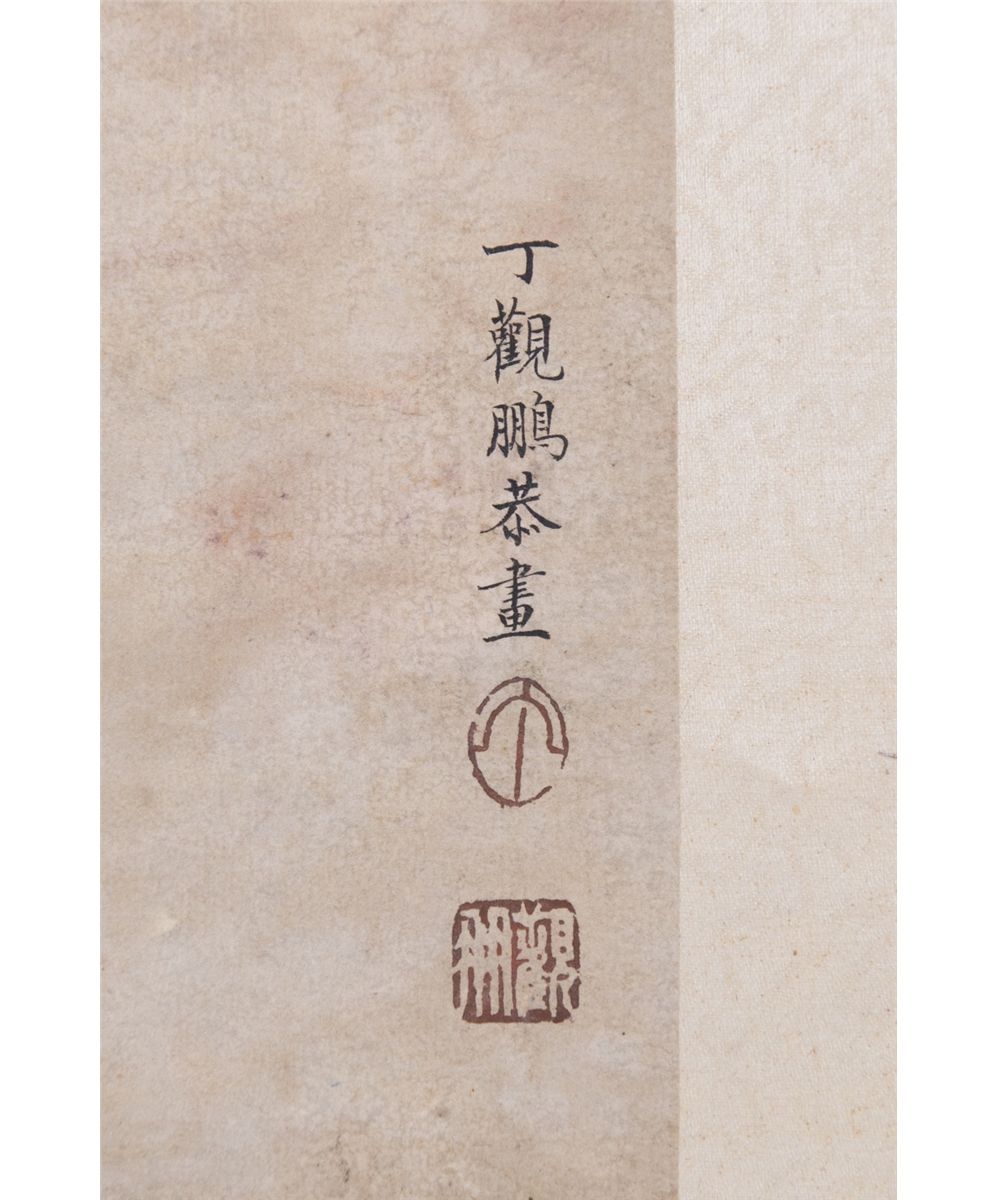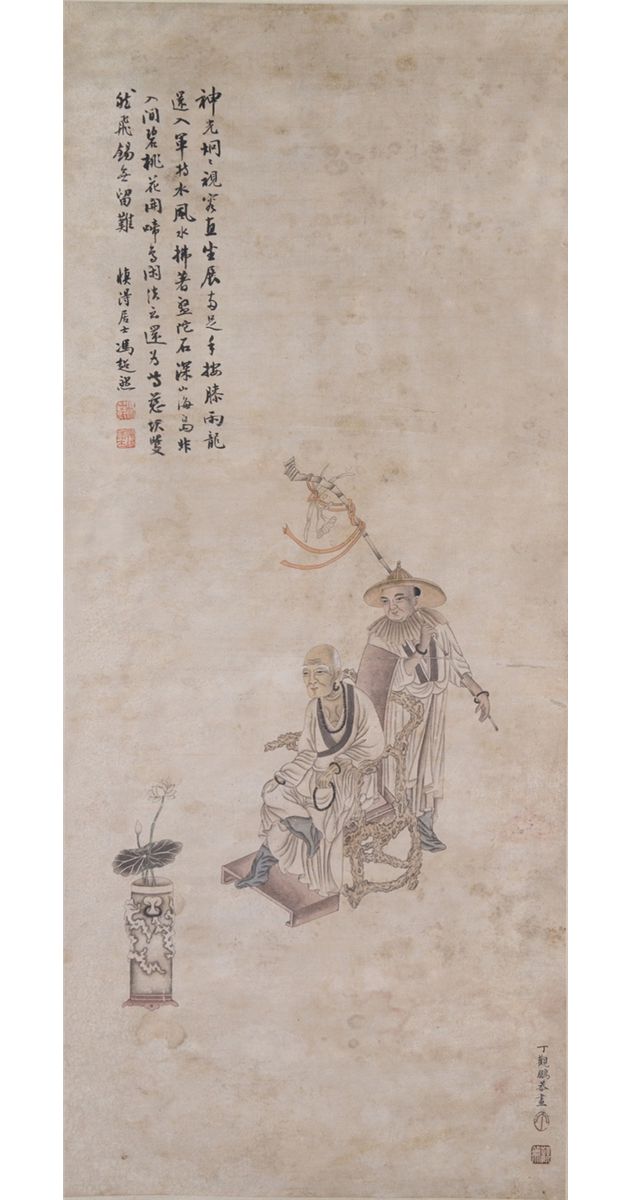 Two men; Chinese ink and watercolour on paper; signed Ding Guanpeng 1708-1771 and inscribed with four artist seals; 89 cm x 39 cm
