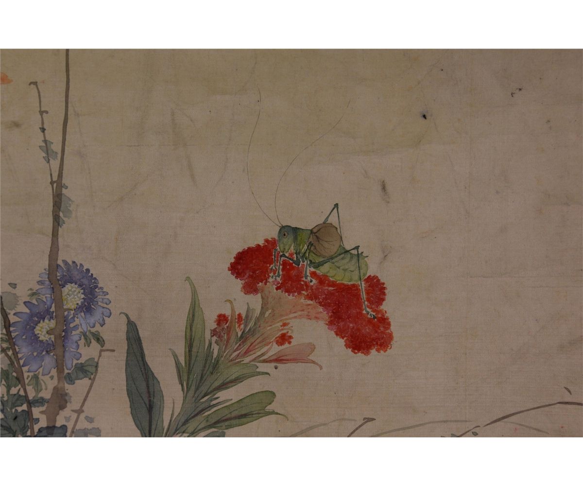 Flowers and insects; Chinese ink and watercolour on paper; hanging scroll; signed Zhang Zixiang and inscribed with one artist seal; 30 cm x 36 cm