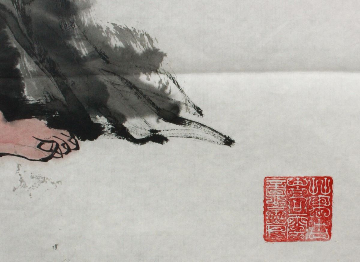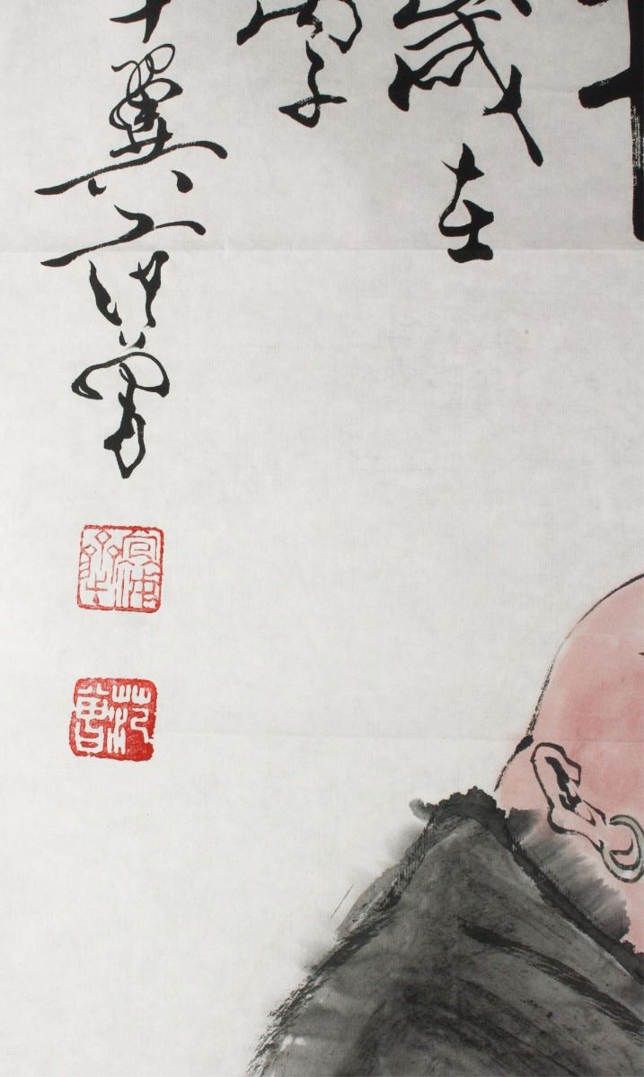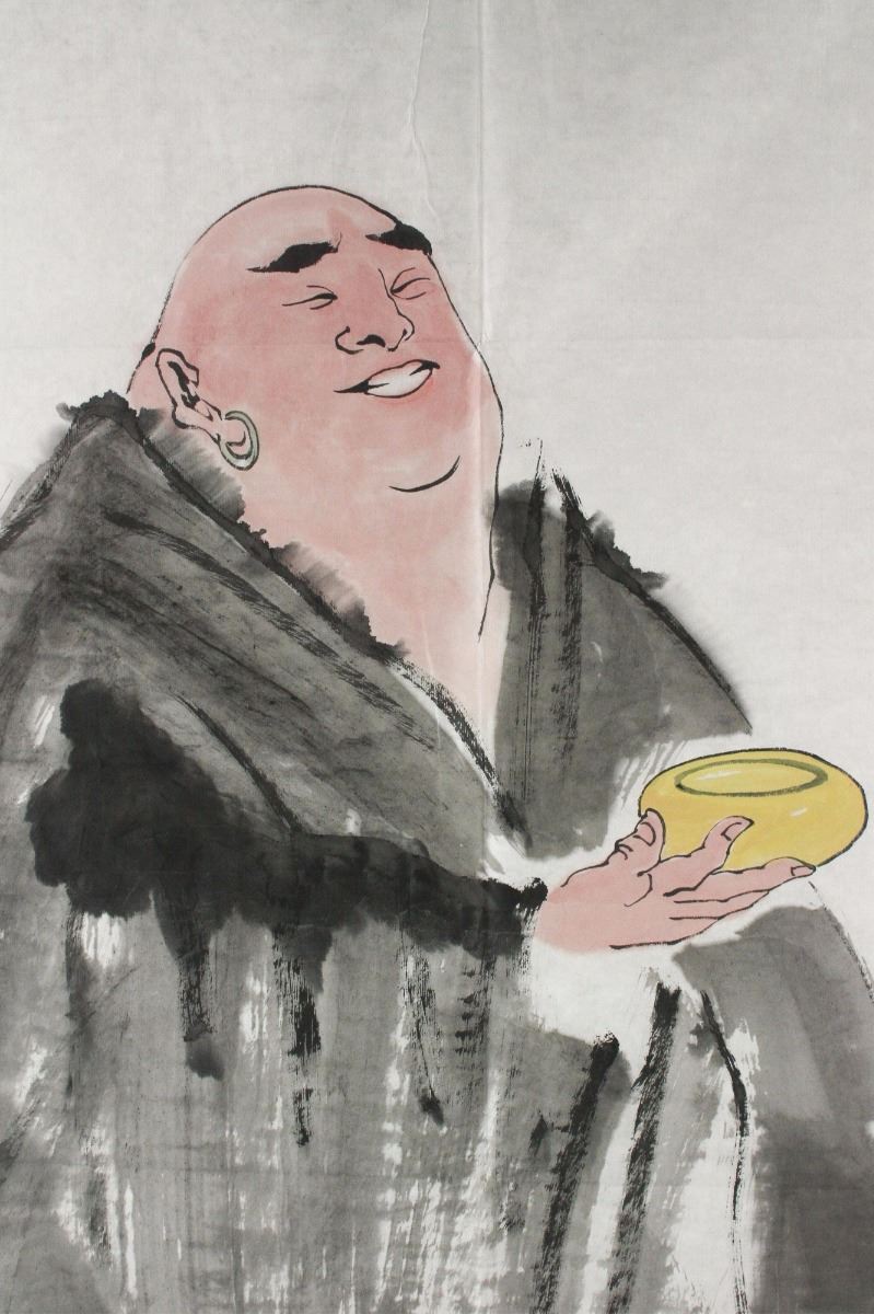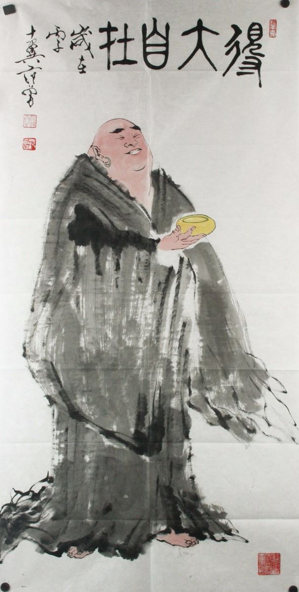 Monk holds a bowl; Chinese ink and watercolour on paper; signed Fan Zeng and inscribed with four artist seals; 137 cm X 70 cm