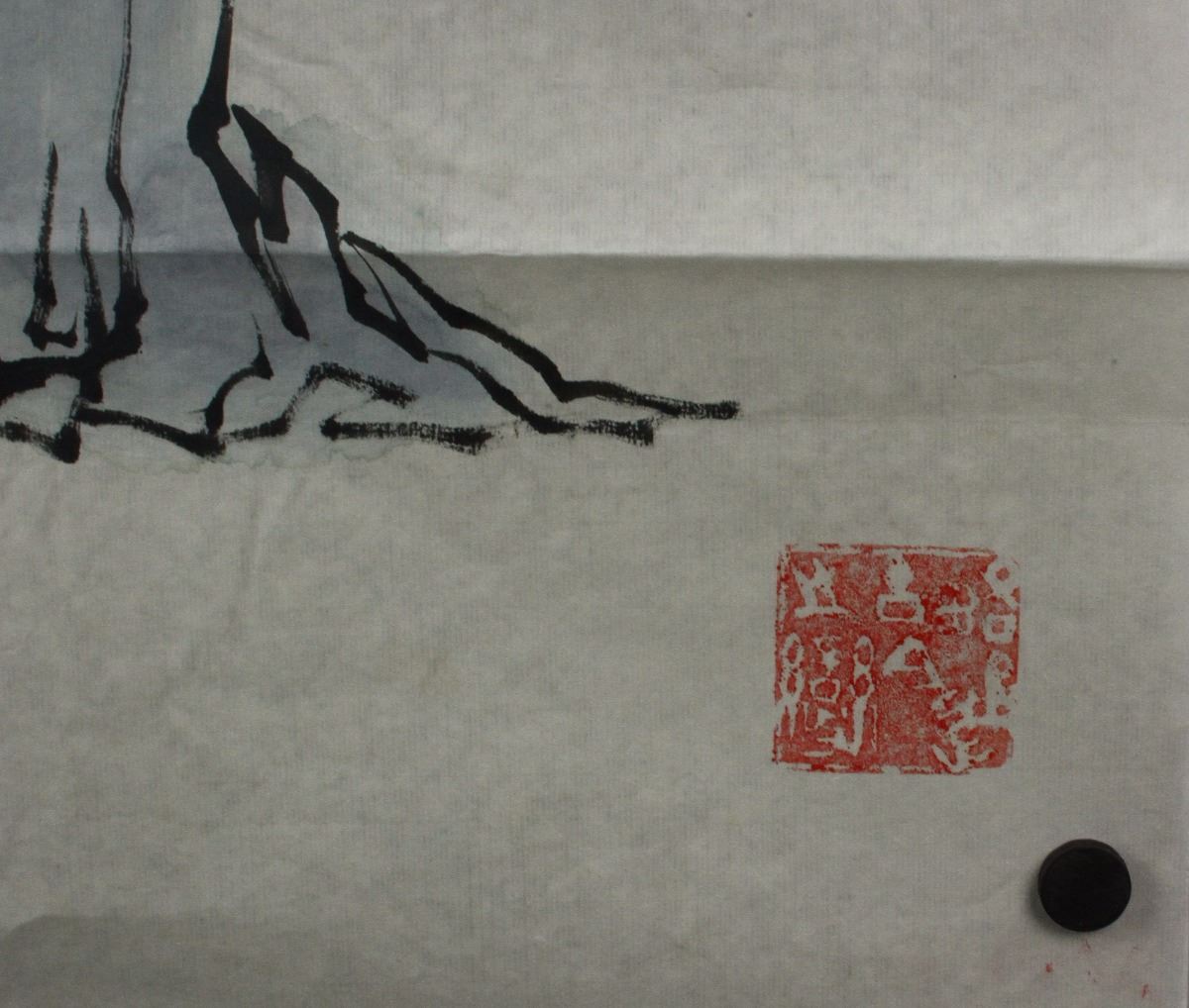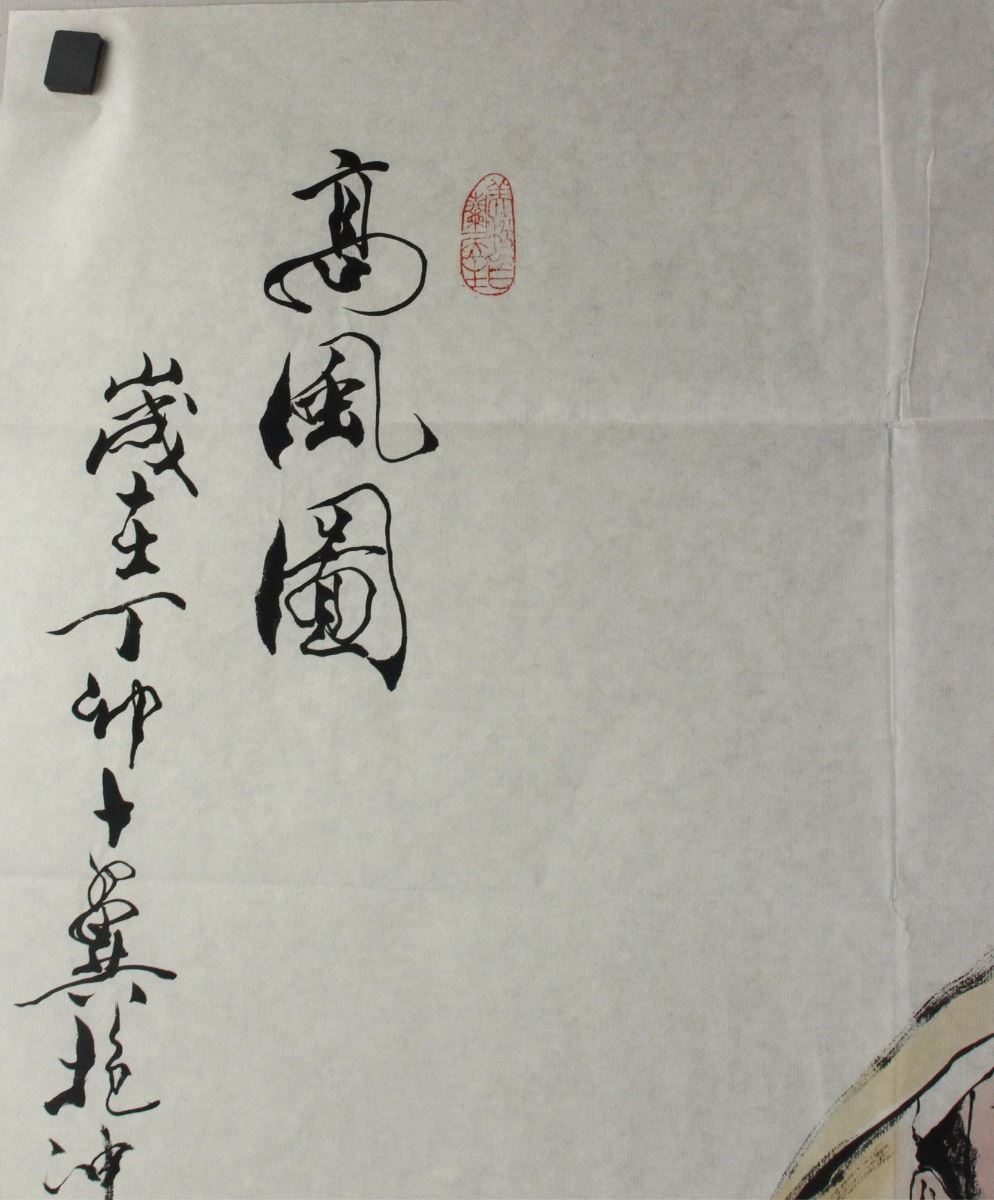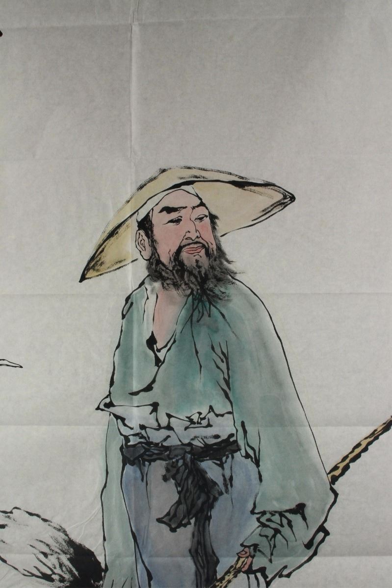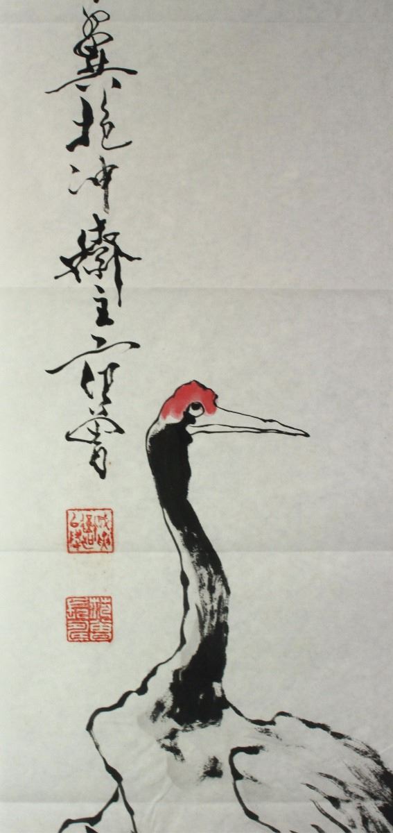 Gentleman with crane; Chinese ink and watercolour on paper; signed Fan Zeng and inscribed with four artist seals; 136 cm X 69 cm