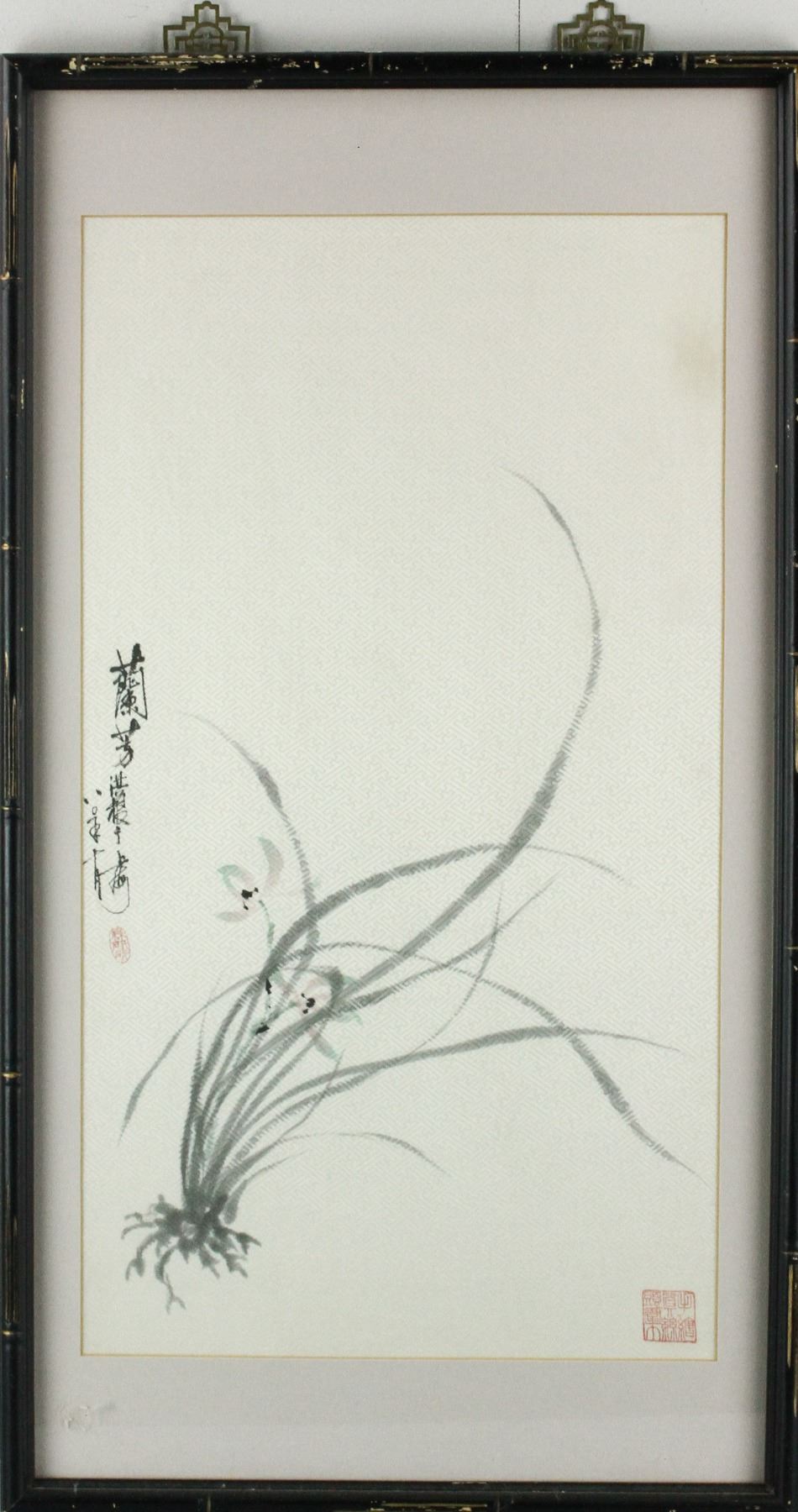 Orchid; Chinese ink and watercolour on silk; signed and inscribed with two artist seals; 85 cm X 46 cm