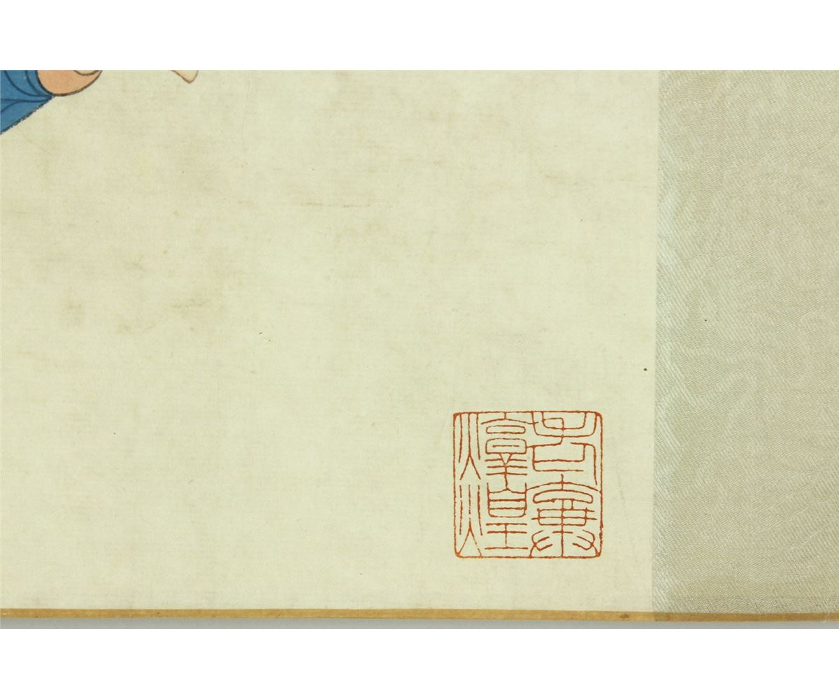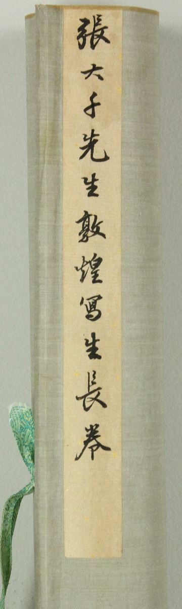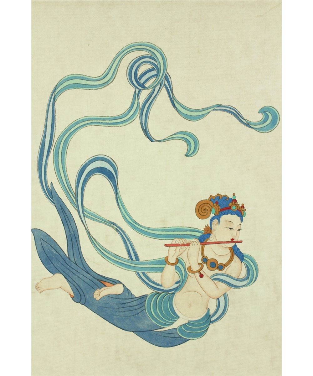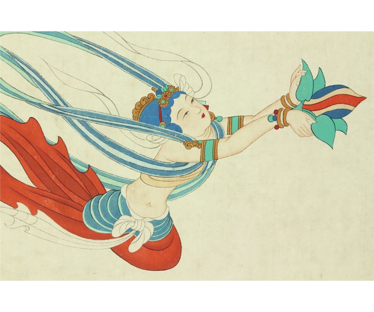 Feitian aspara; Chinese ink and watercolour on paper; hand scroll; signed Zhang Daqian and inscribed with three artist seals; 35 cm x 65 cm; 35 cm x 230 cm