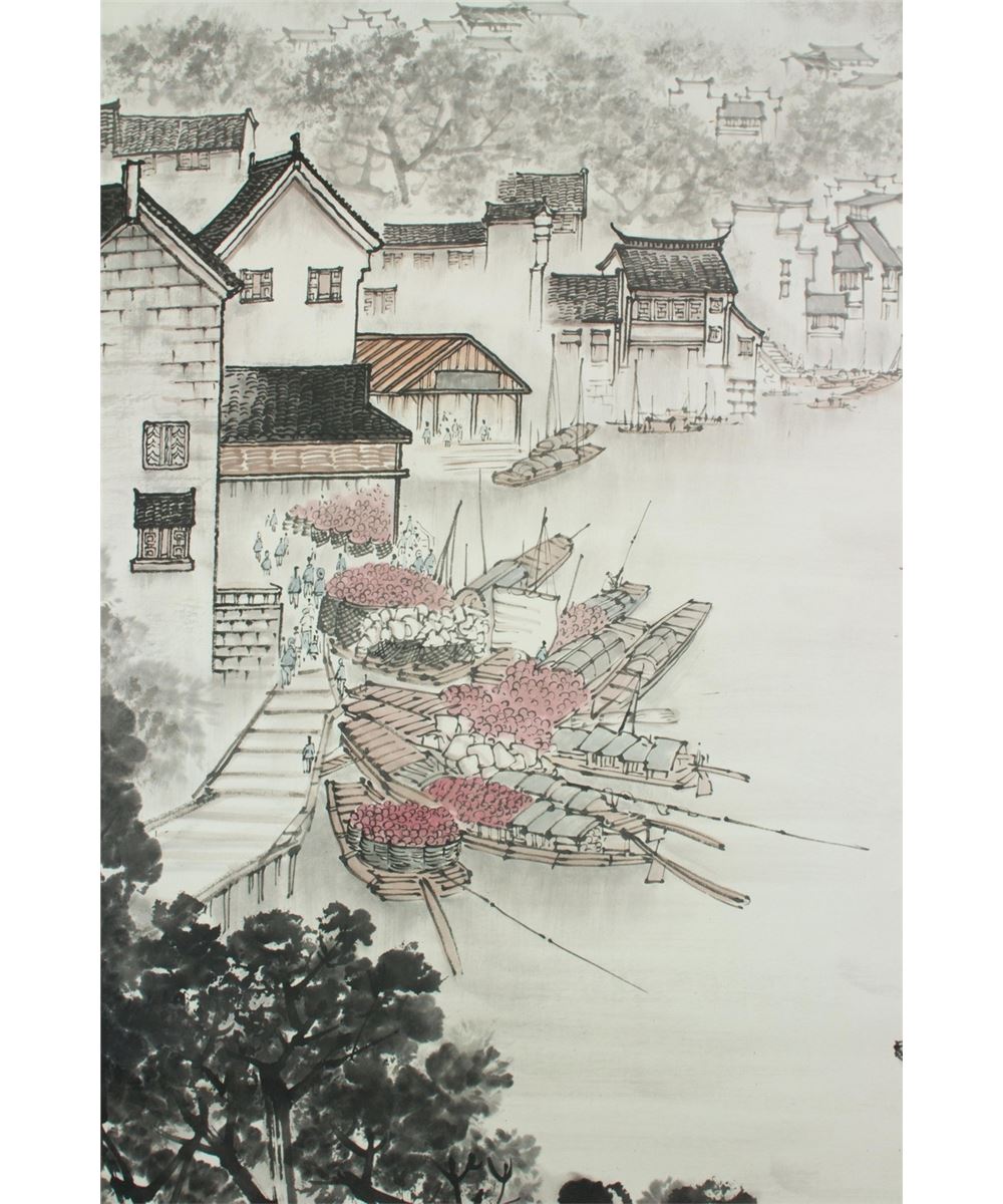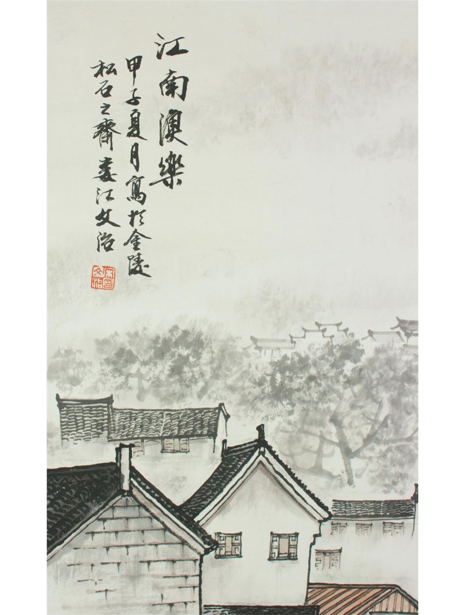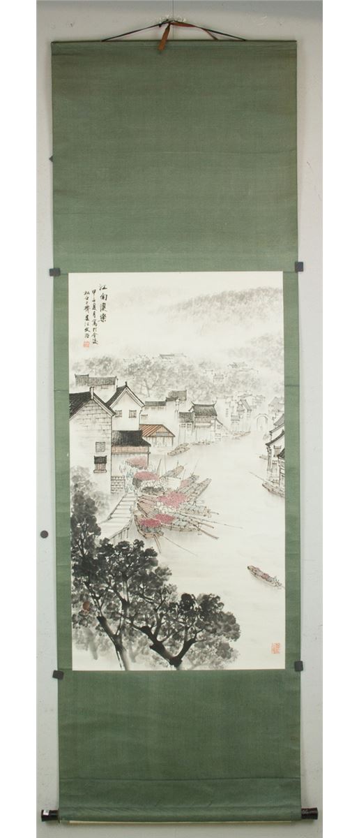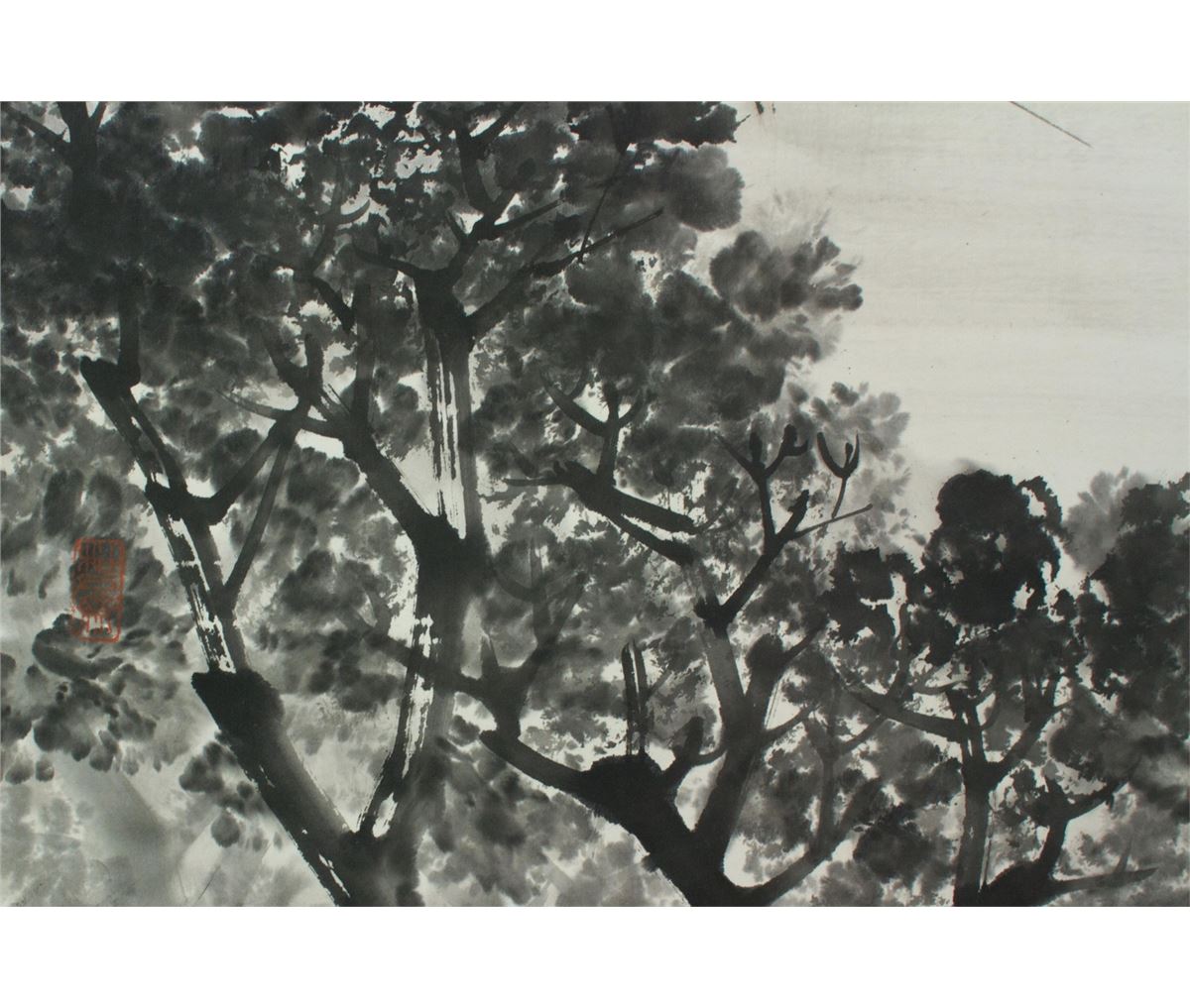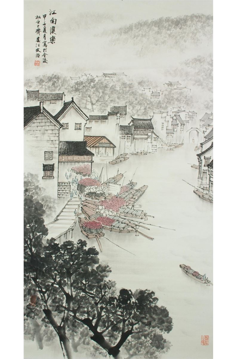 Landscape, hanging scroll, Chinese ink and watercolour on paper, signed and sealed by Song Wenzhi (1919-1999). 101cm X 54 cm.
