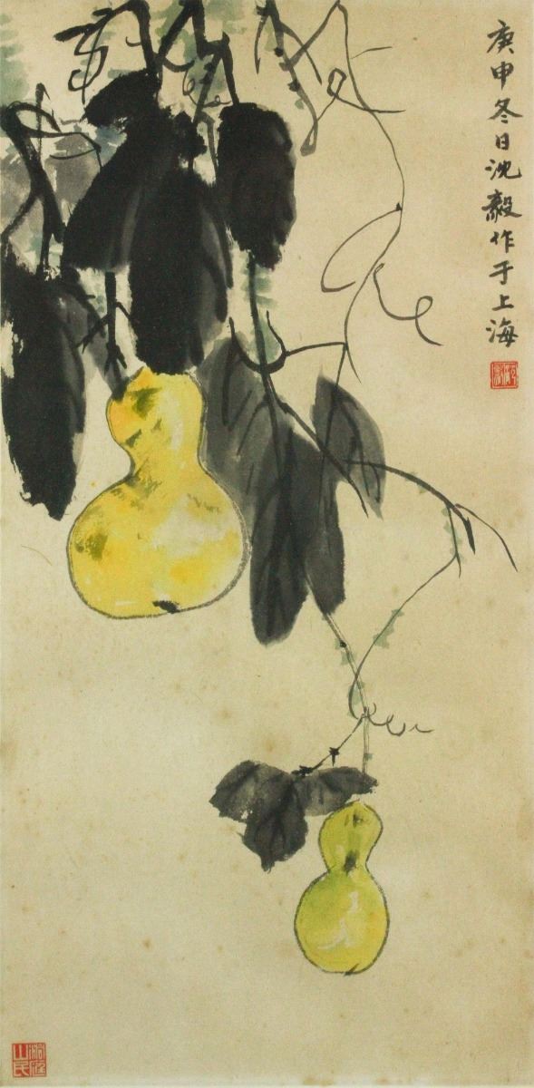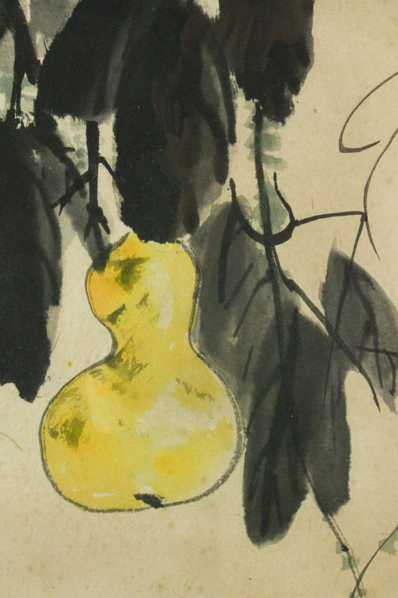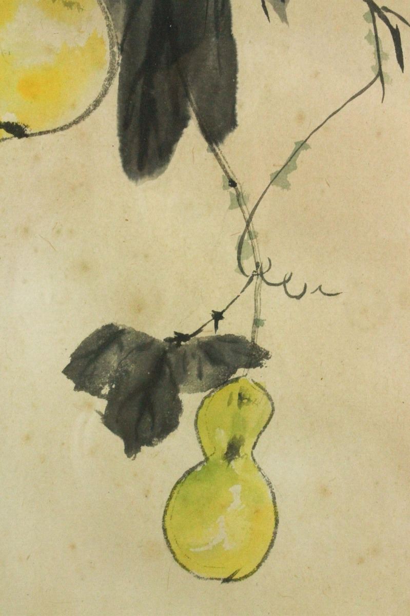 Calabash vine; Chinese ink and watercolour on paper; framed; signed and inscribed with two artist seals; 100 cm X 50 cm