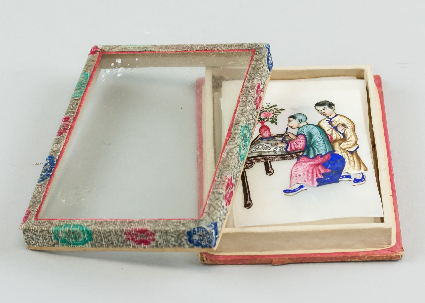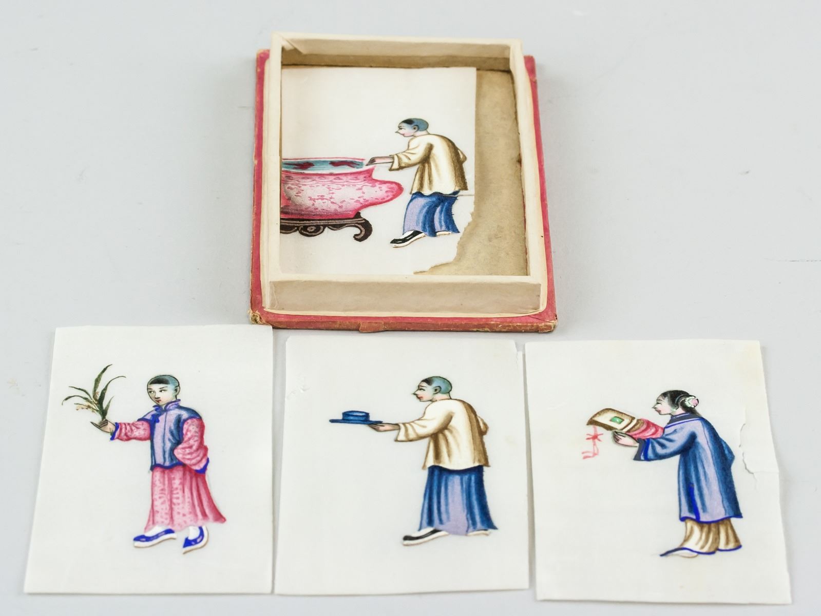 Ink and watercolor on rice paper, with box. Featuring 7 pieces of figure painting. 12 x 8 cm