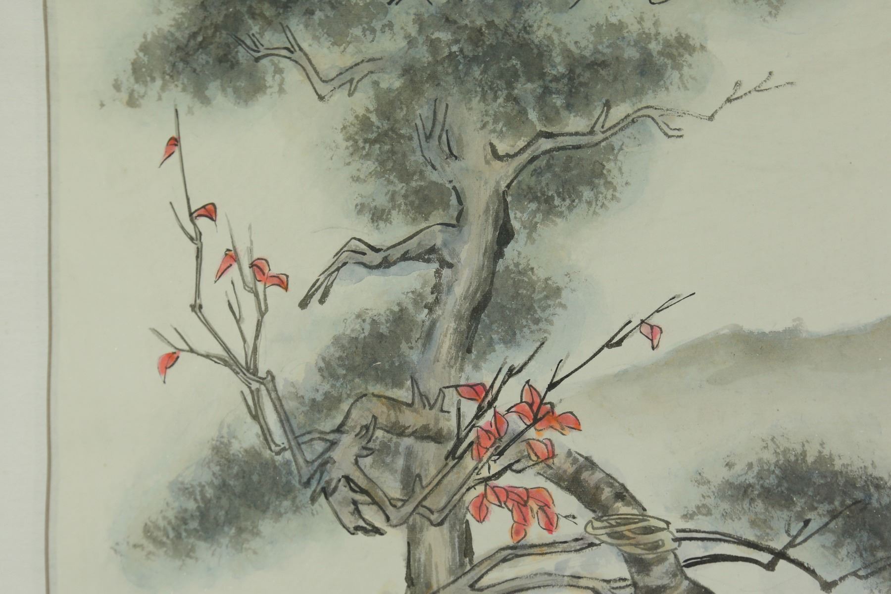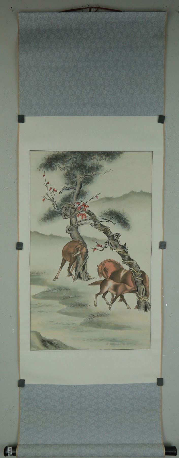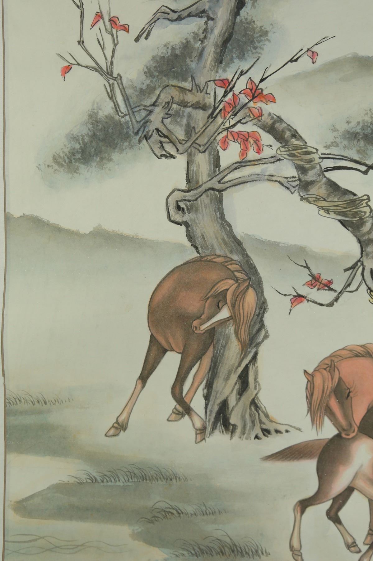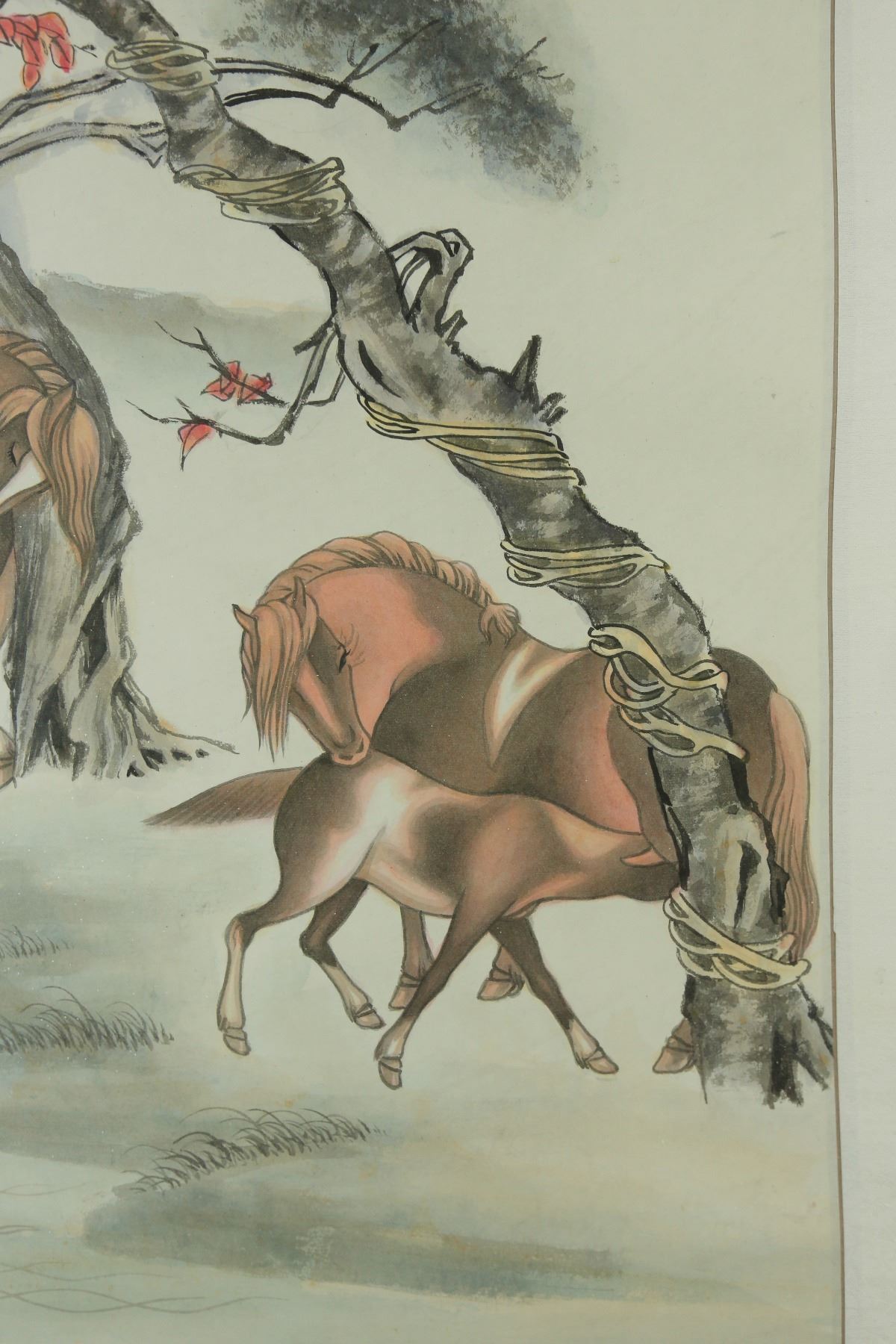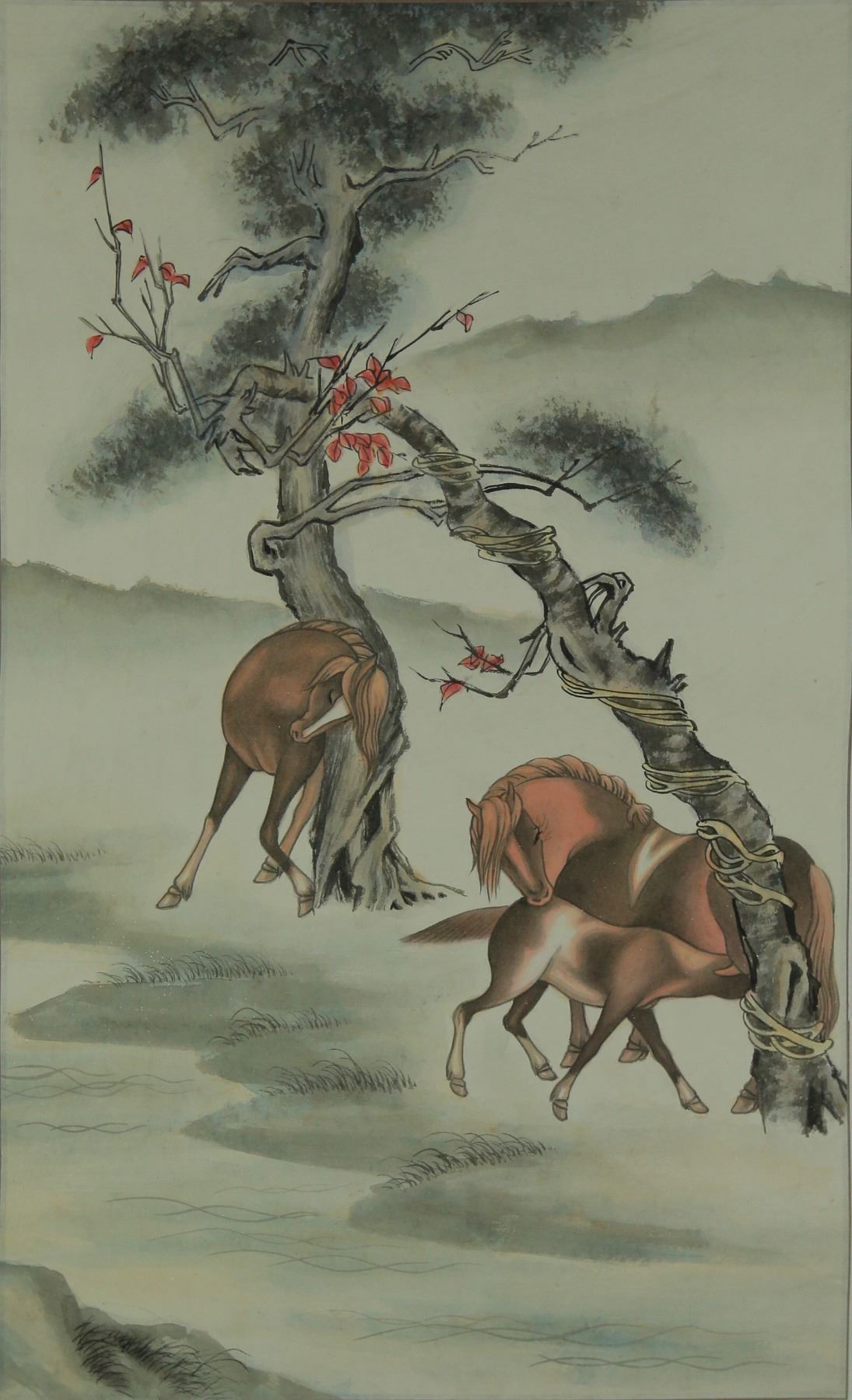 Horses beside trees; Chinese ink and watercolour on paper; hanging scroll; 66 cm x 39 cm