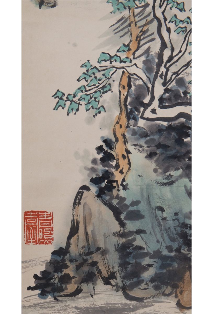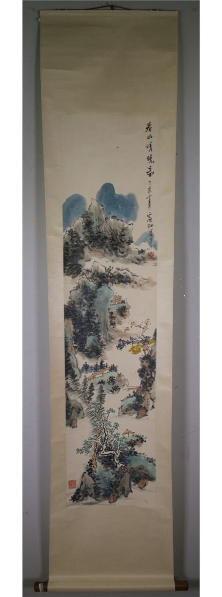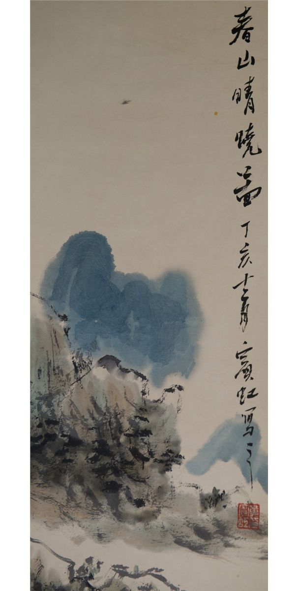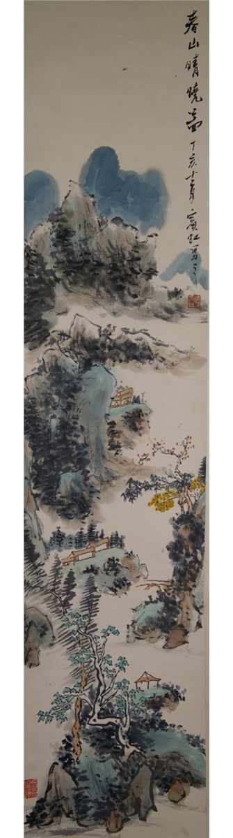 Landscape, Chinese ink and watercolour on paper; signed Huang Bin Hong (1865-1955) and inscribed with two artist seals; 130 cm x 33 cm