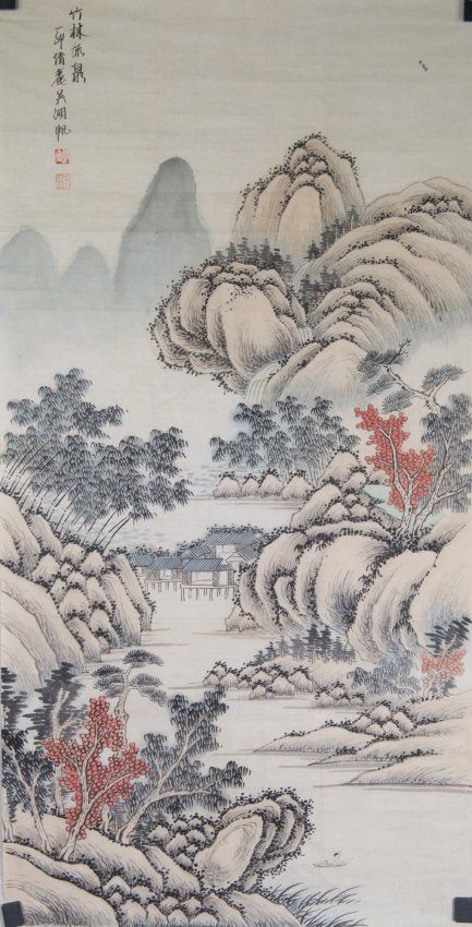Chinese Watercolour Landscape Painting Wu Hu Fan