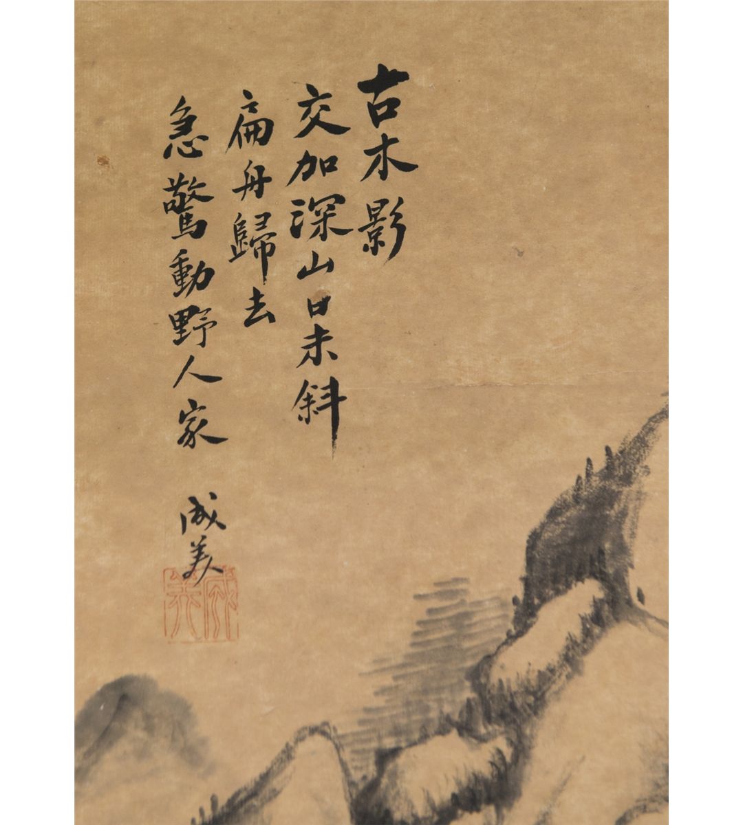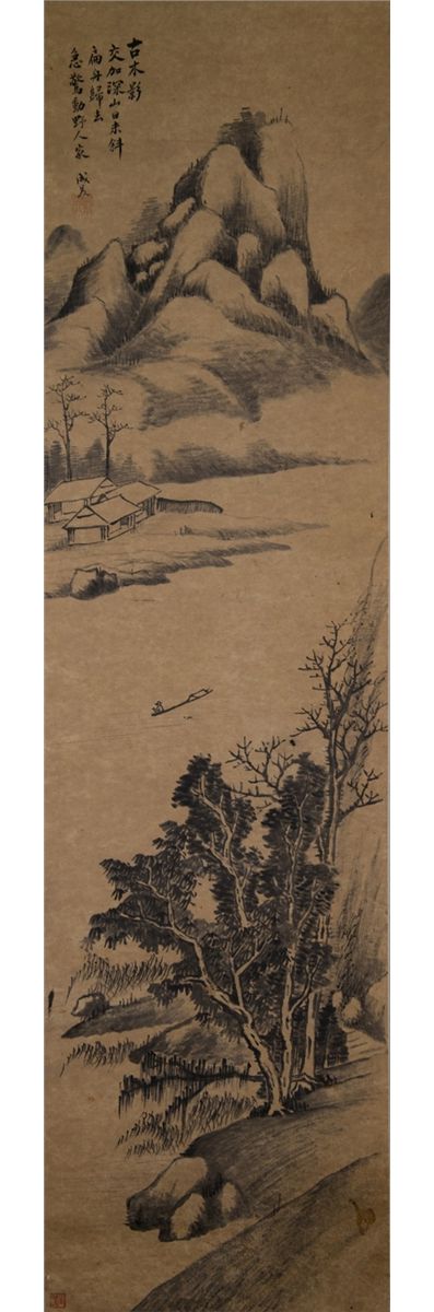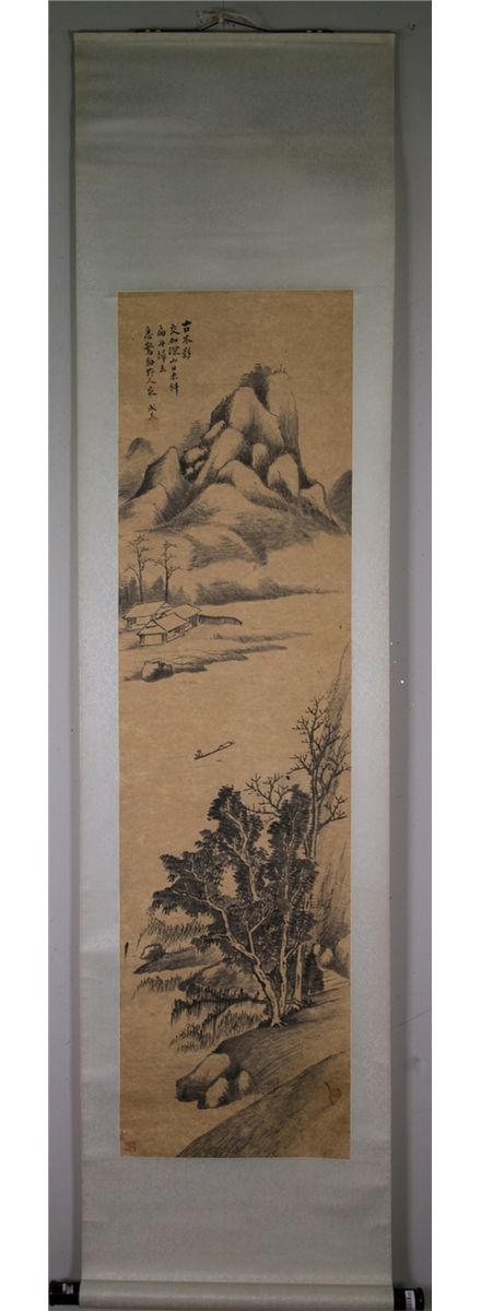 Landscape, Chinese ink and watercolour on paper; signed and inscribed with two artist seals; 124 cm x 35 cm