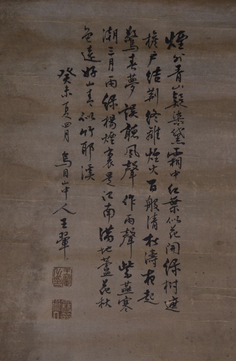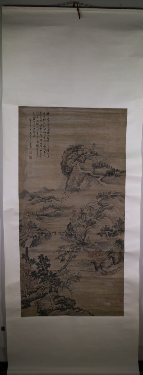 Landscape, Chinese ink and watercolour on paper; signed and inscribed with four artist seals; 131 cm x 66 cm