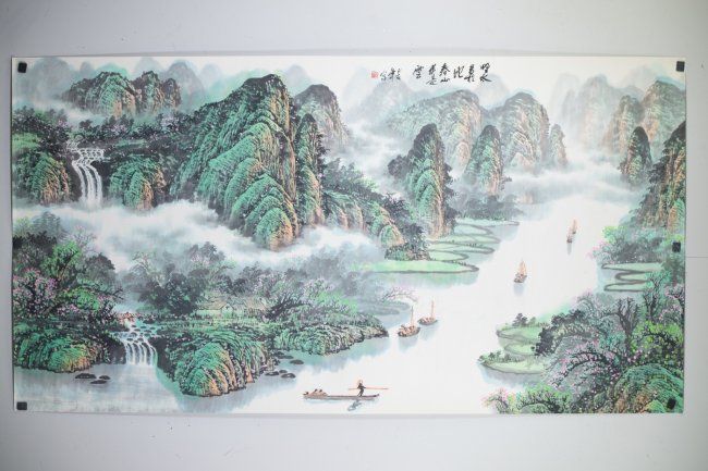 Chinese Watercolour Landscape River Scene