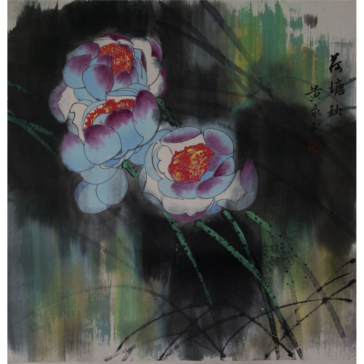 Lotus, Chinese ink and watercolour on paper; signed Huang Yong Yu (1924 - ) and inscribed with one artist seal; 68 cm x 65 cm