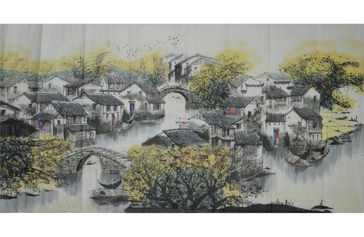 Chinese watercolour painting, ink and colour on paper; 133 cm x 70 cm