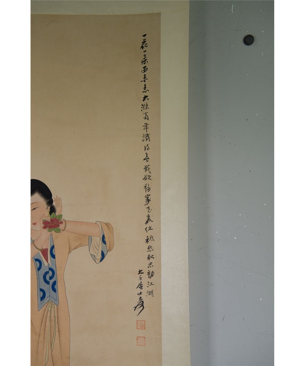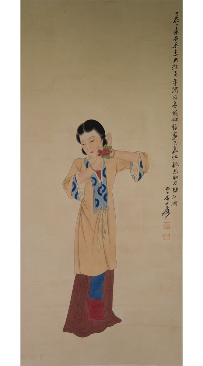 Lady; Chinese ink and watercolour on paper; hanging scroll; signed Zhang Da Qian (1899-1983) and inscribed with two artist seals; 105 cm x 46 cm