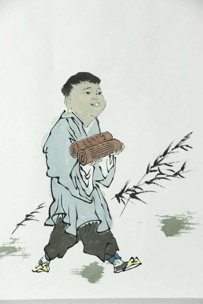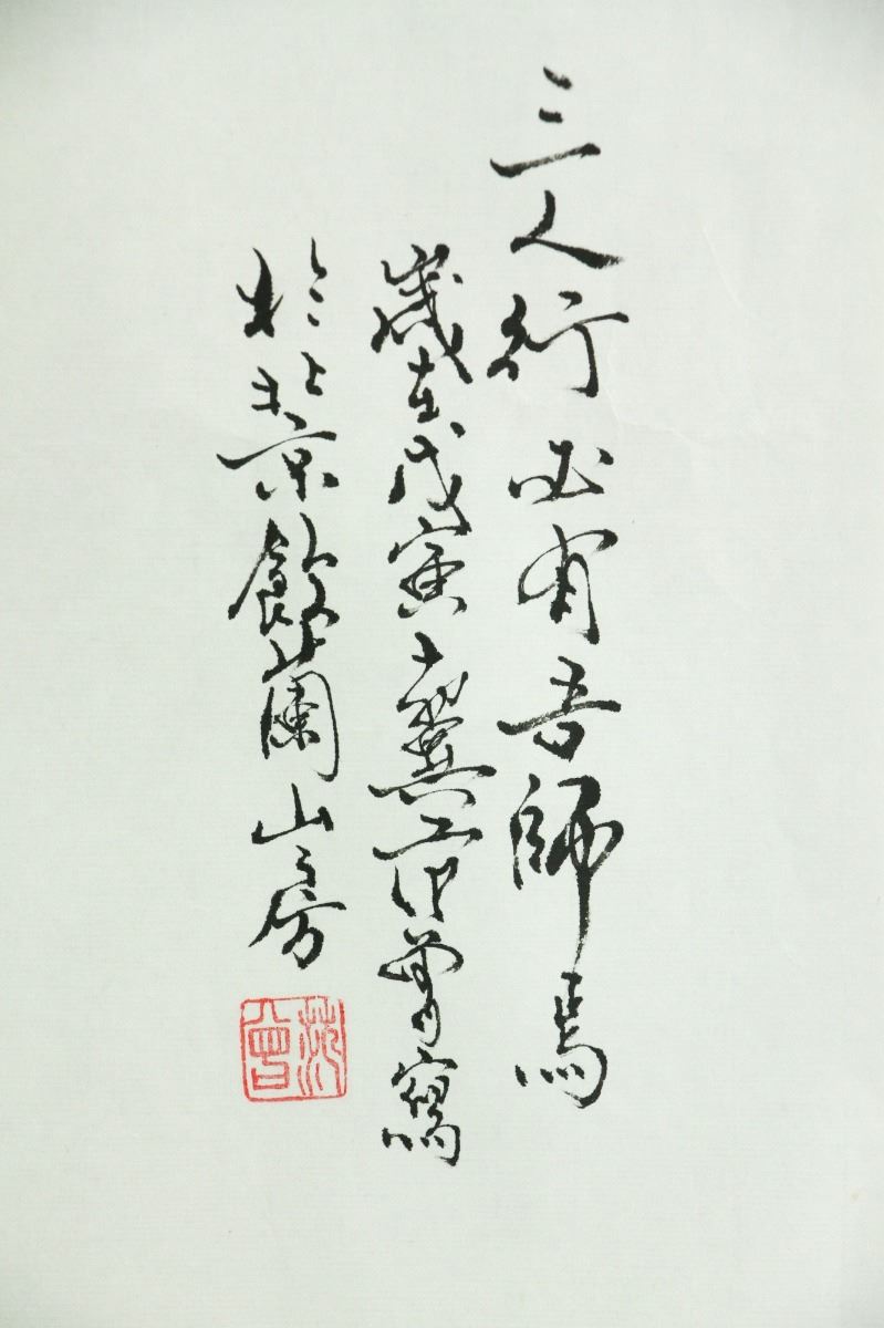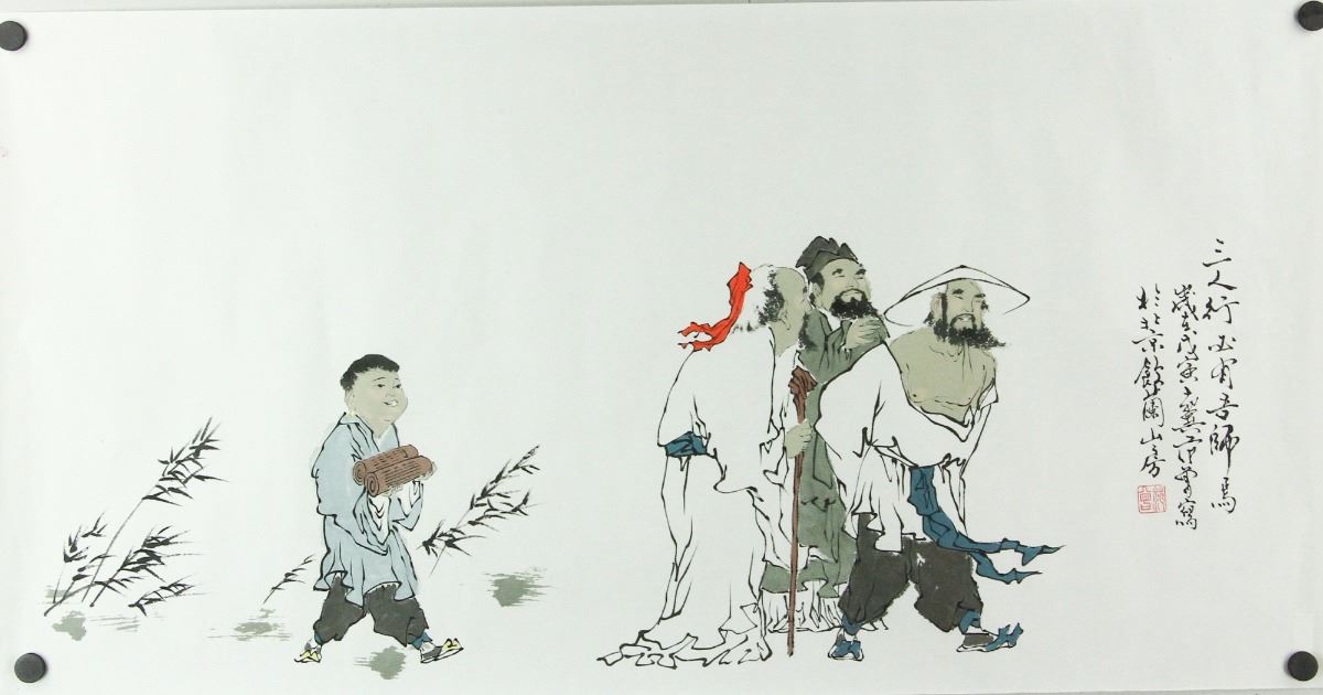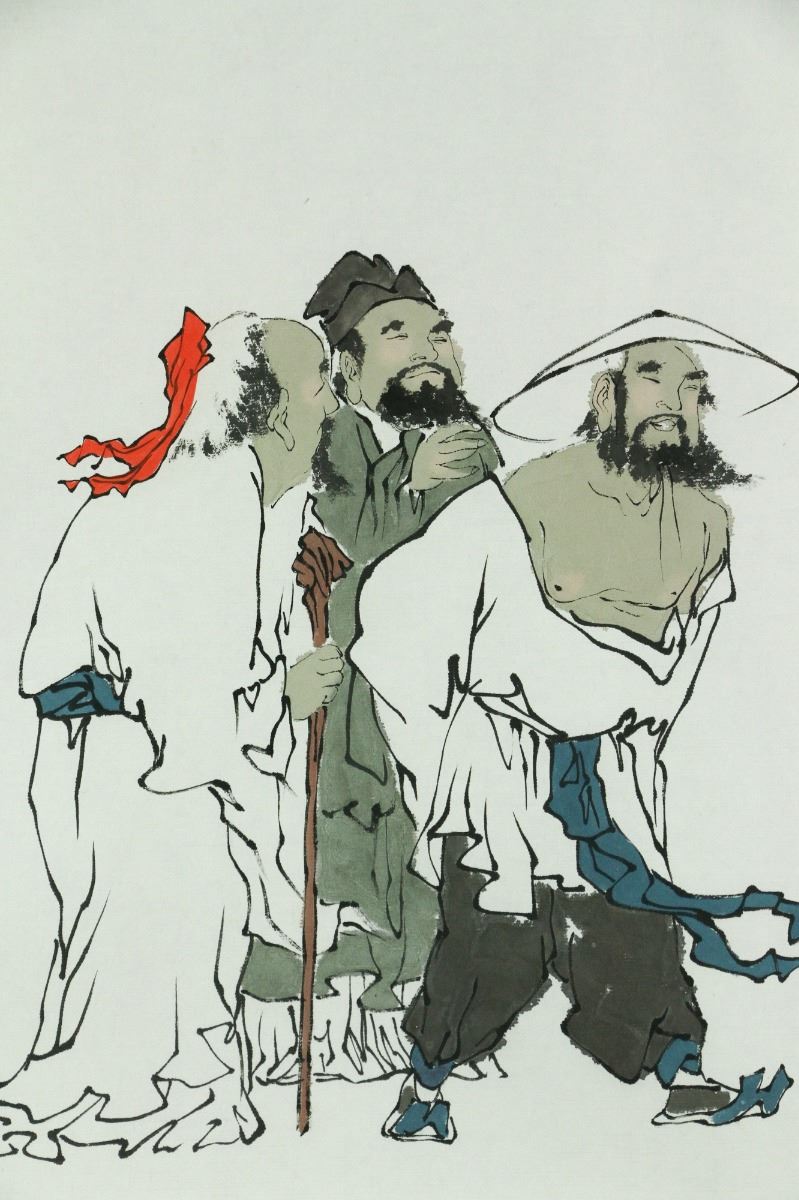 Three scholars with a servant boy; Chinese ink and watercolour on paper; signed Fan Zeng and inscribed with an artist seal; 45 cm X 86 cm