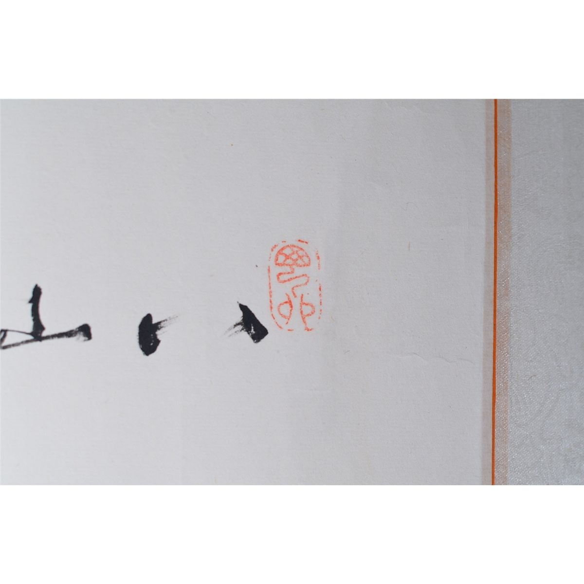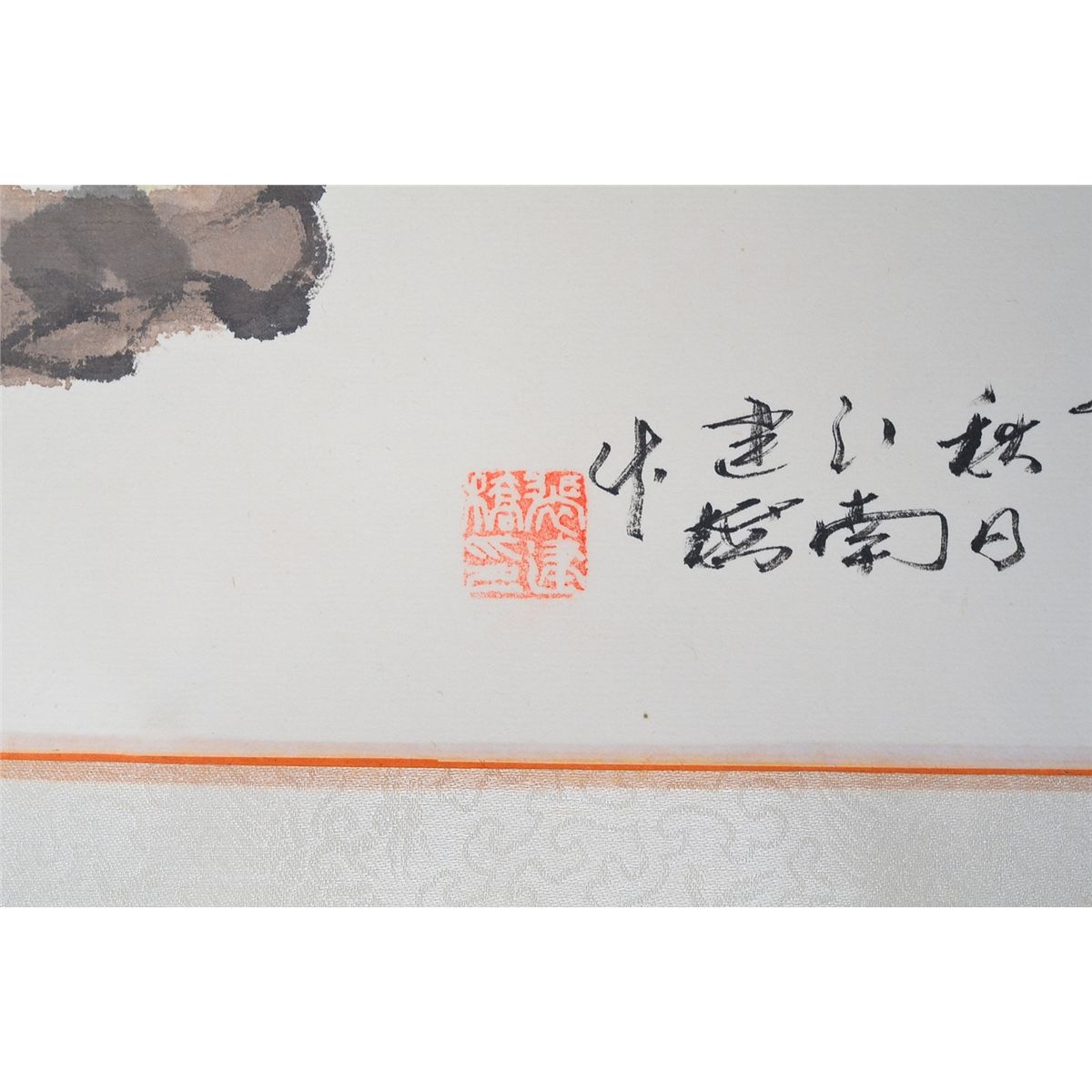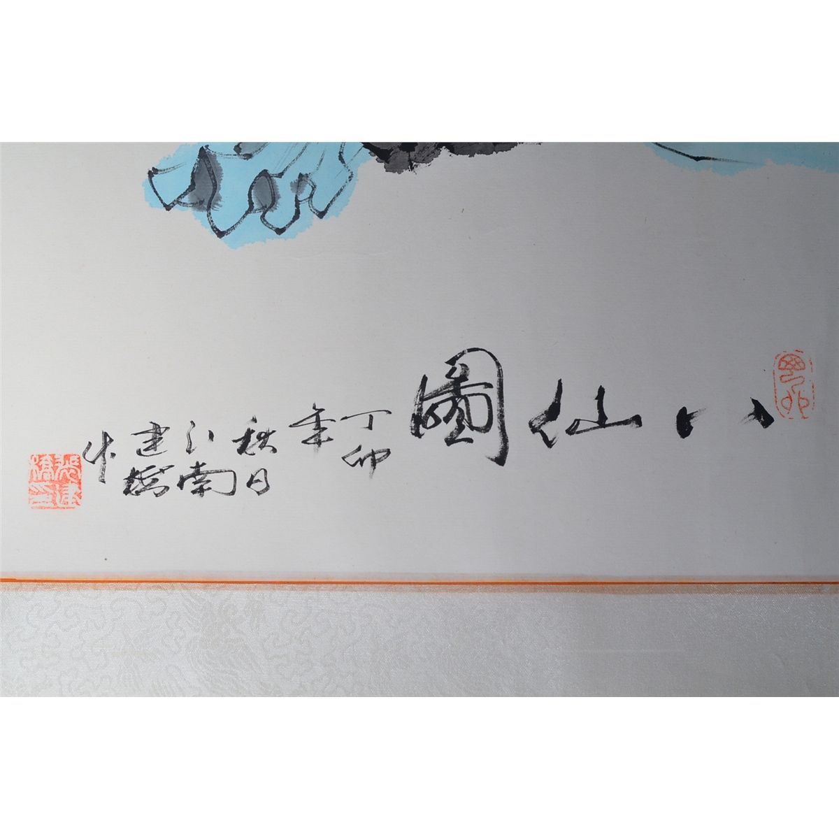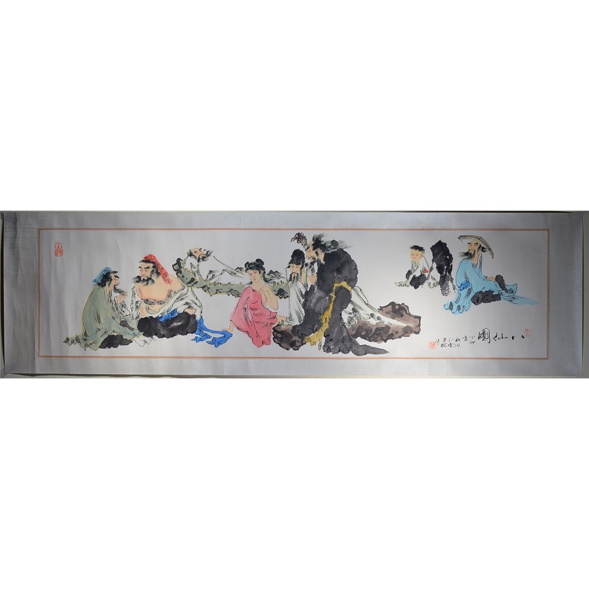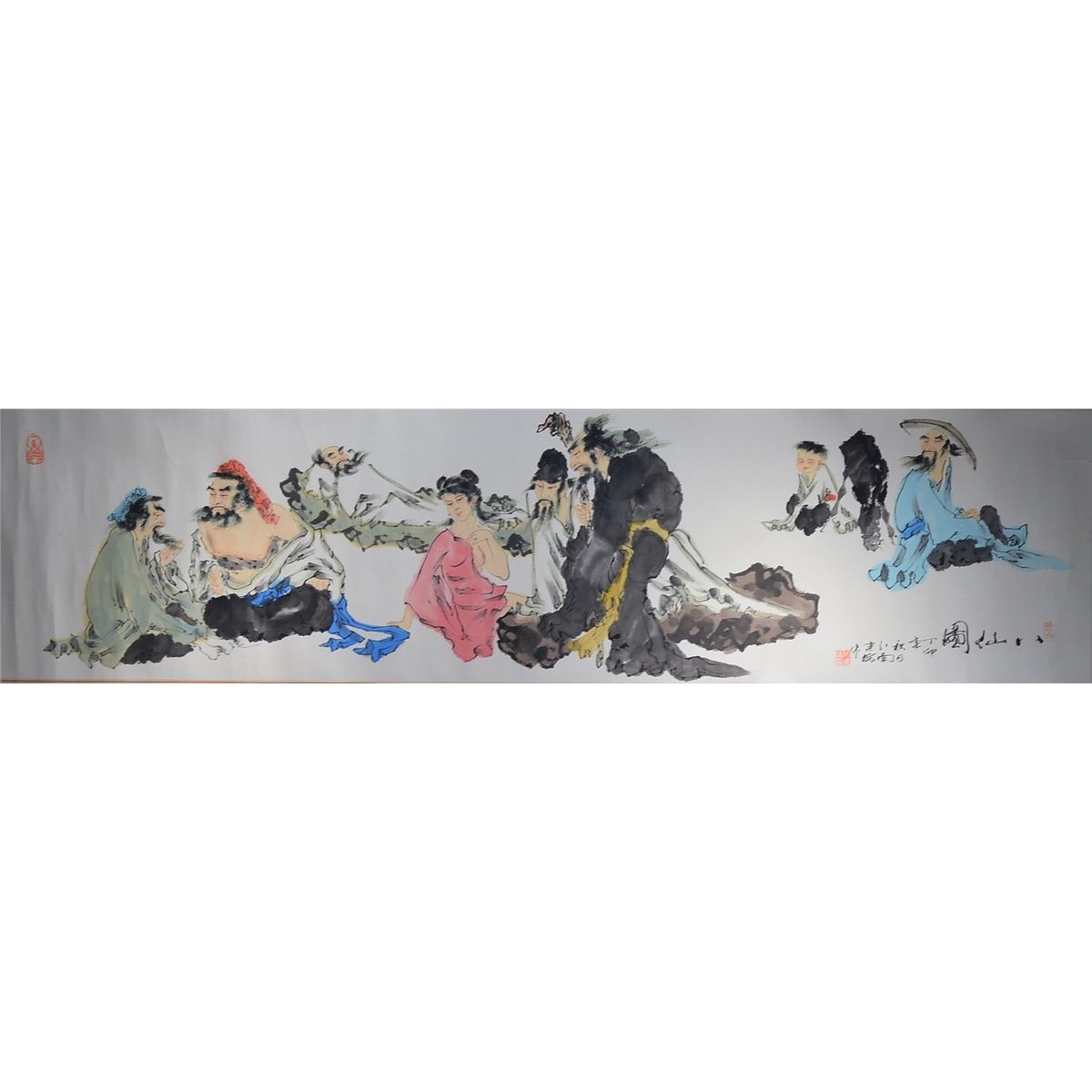 Chinese watercolour on paper: immortals; inscribed and signed with one artist seal; 130 cm X 34 cm
