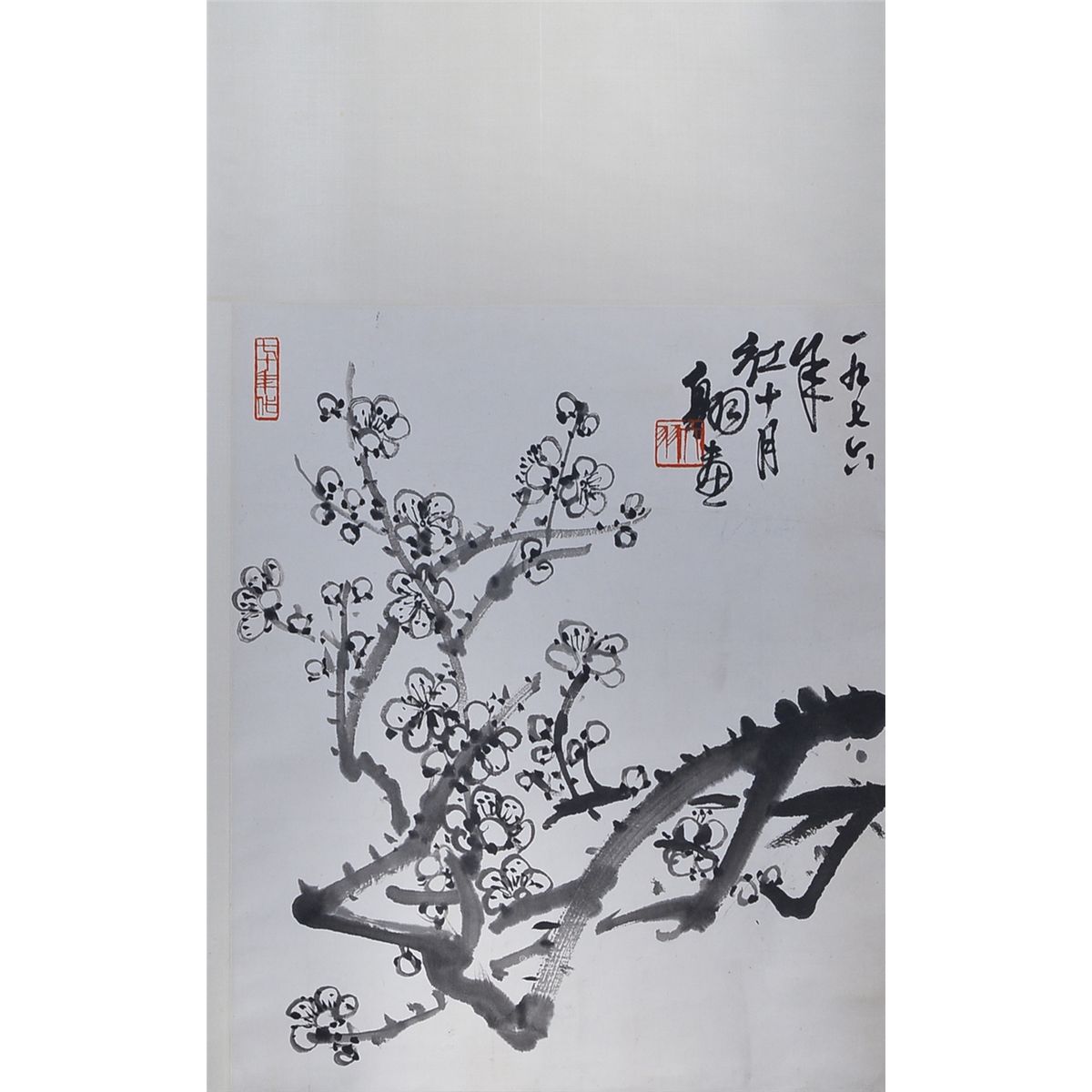 Hanging Scroll, Chinese watercolour on paper: spring buds; inscribed and signed with one artist seal; 190 cm X 52 cm