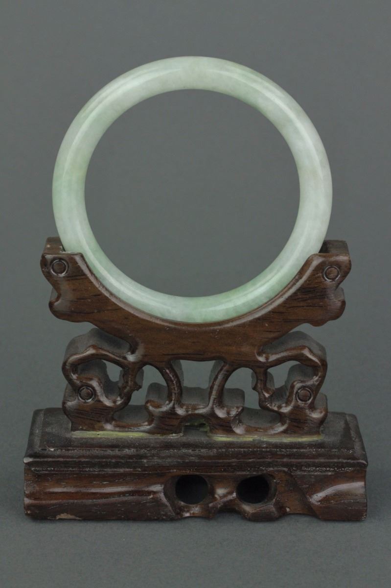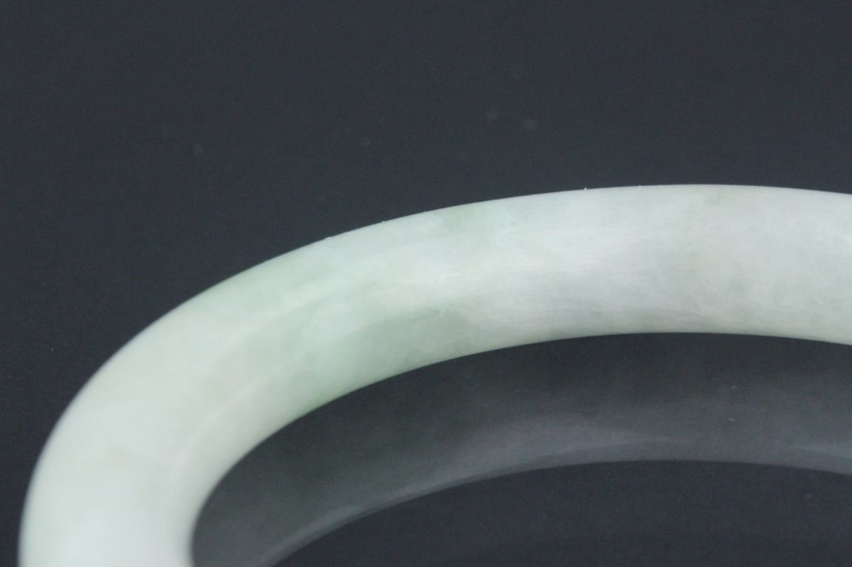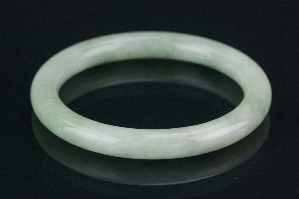 Chinese jadeite carved bangle; of rounded edge; of pale green tone; D: 7 cm, 36 grams, density: 3.32