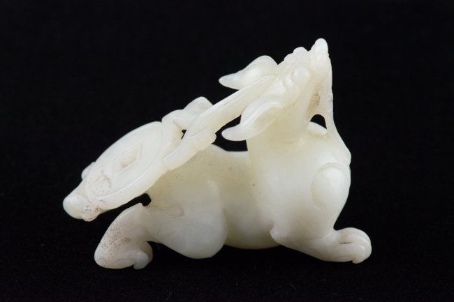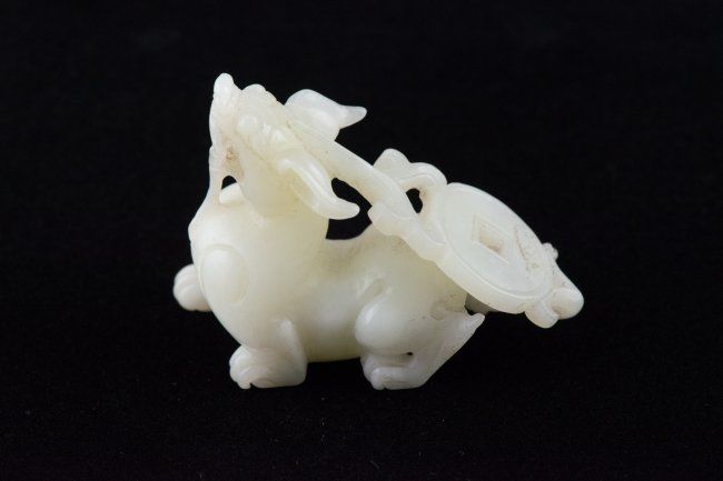 Chinese white jade carved archaic dragon; H: 5.2 cm, W: 7 cm, 86 grams