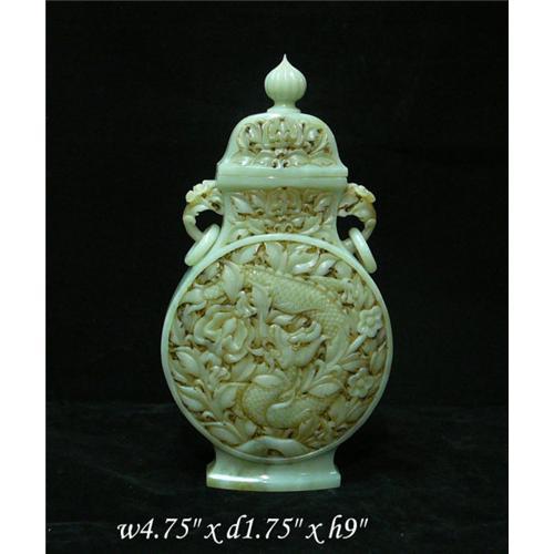 <tr><td>Title:Chinese White Jade Dragon Carved Flask </td></tr>