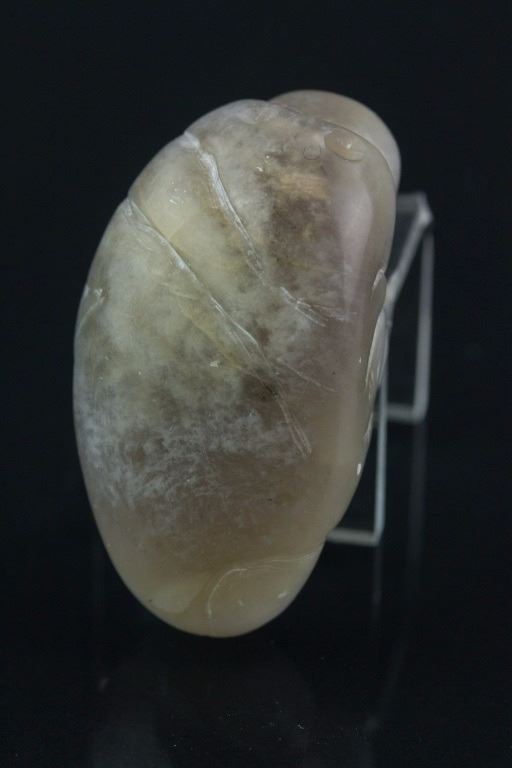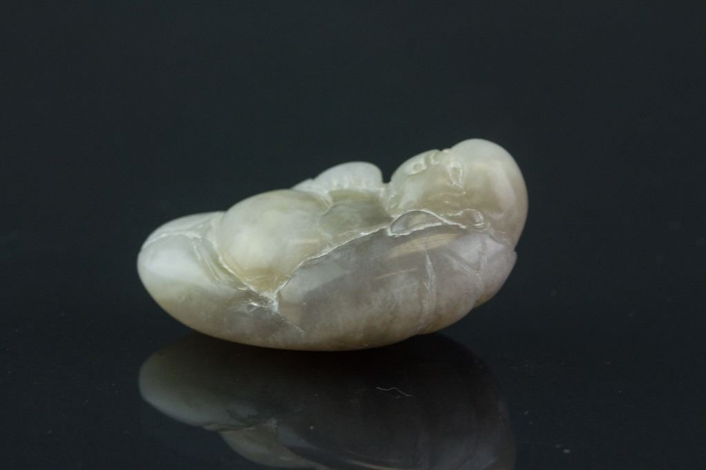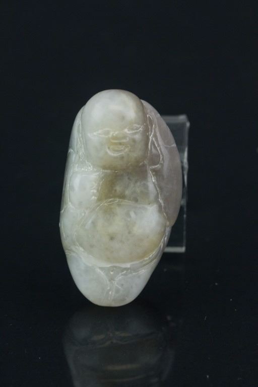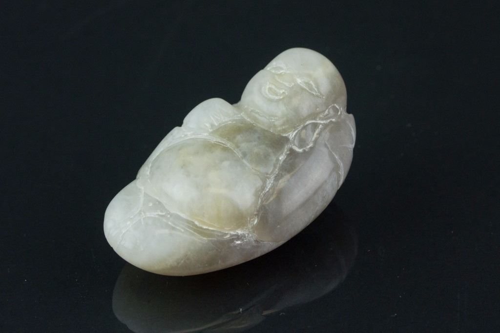 Chinese white Shoushan stone toggle; carved with laughing Buddha; H: 4.5 cm, W: 2.5 cm, L: 1.8 cm, 32 grams