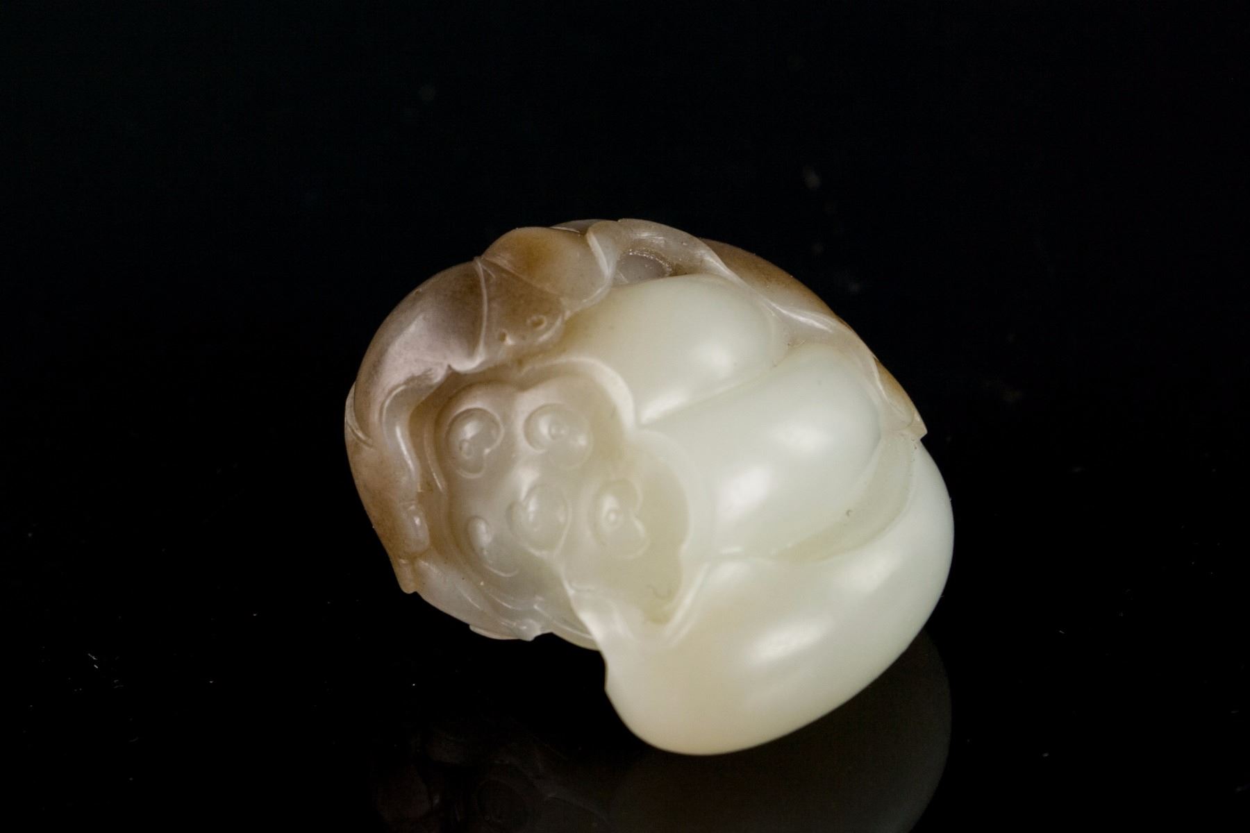 Chinese white hardstone carved toggle; carved in lotus flower form; of white tone and russet tinge; 4 cm x 3.5 cm, 49 grams