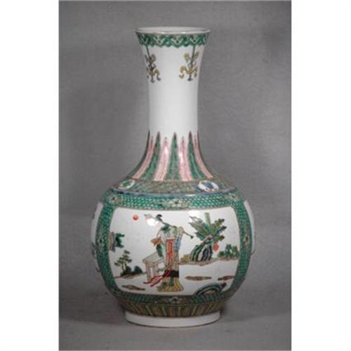 Chinese Wu-Cai Porcelain Vase. Decorate with figures and floral. Good condition. 15.25" high.