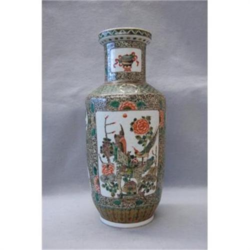 Chinese Wu-Cai Porcelain Vase. Floral and bird decoration. 16.5" high, good condition.