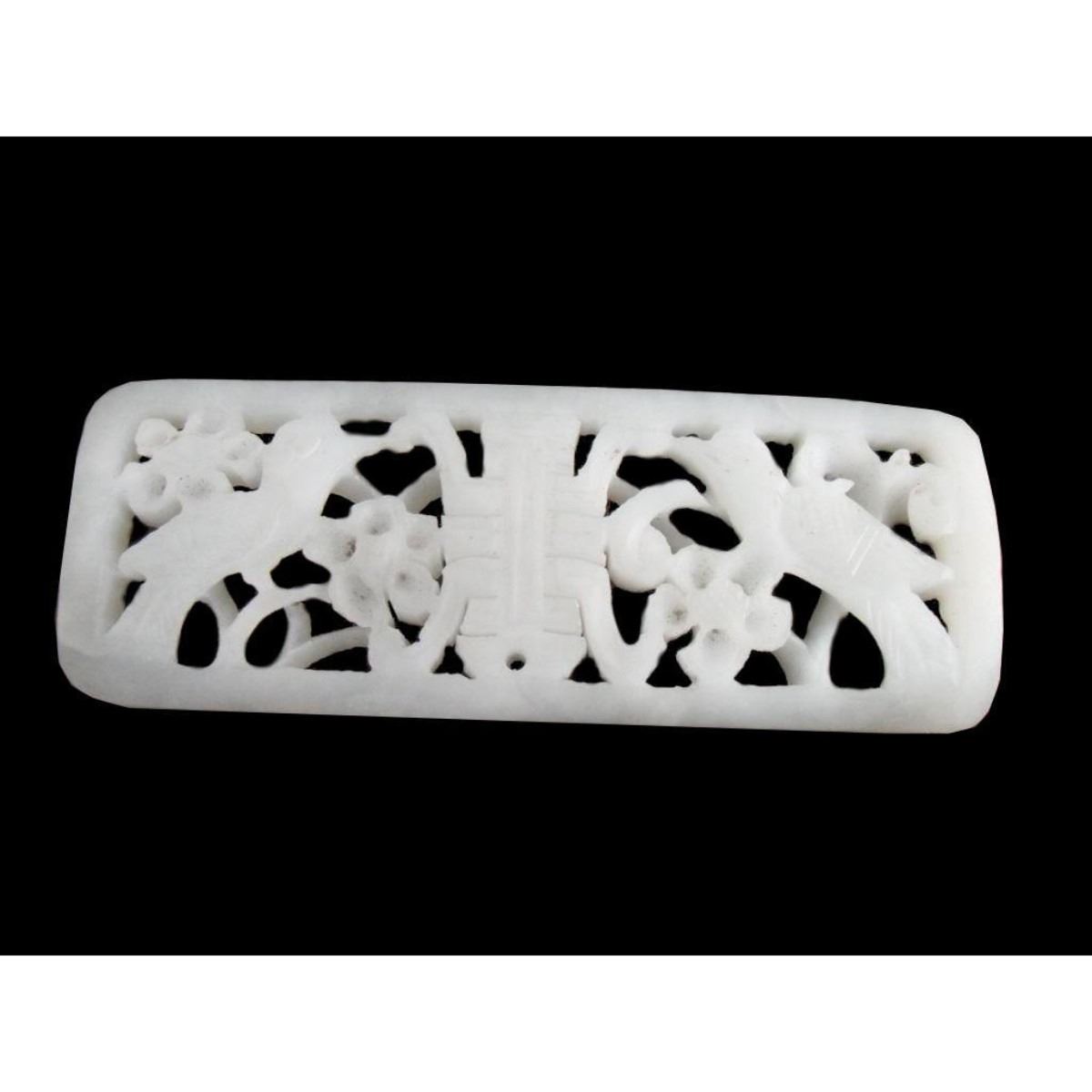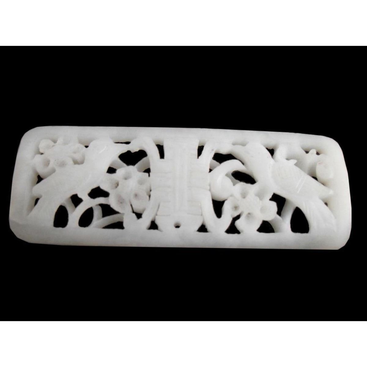 Xinjiang Hetian jade carving depicting double birds & flowers. 1" H X 2 3/4" W.