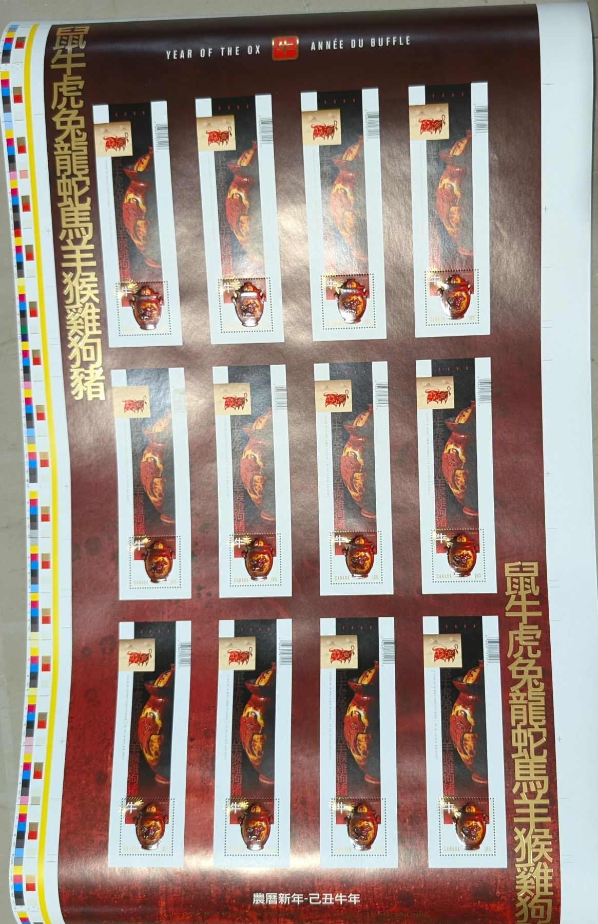 Chinese Year of the Ox uncut press sheet stamps: 12 stamps, $1.65 each. Face Value $19.80.