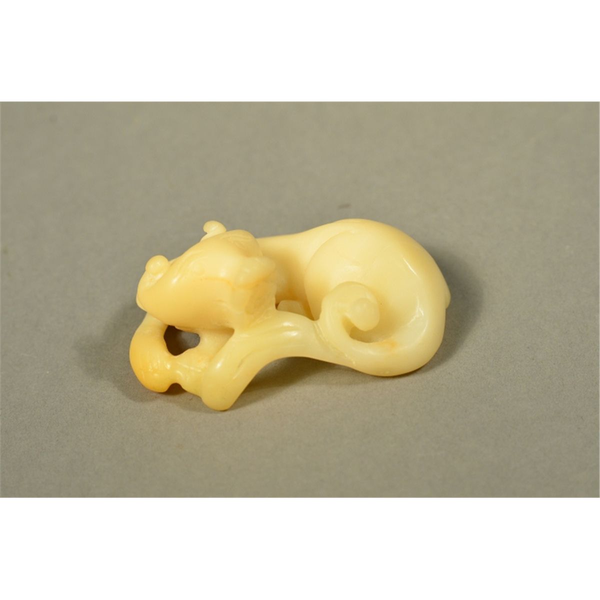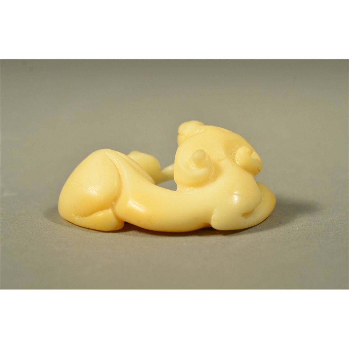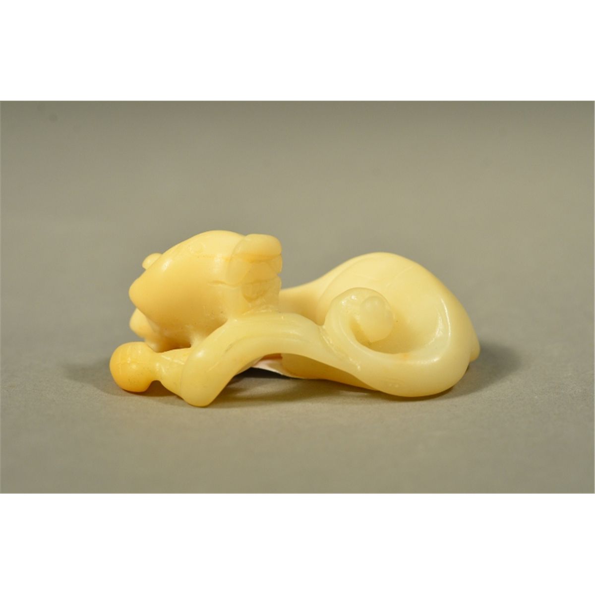 Chinese carved yellow jade figure: featuring cow in recumbent pose; L: 6 cm, H: 3 cm, W: 4 cm, 55 grams
