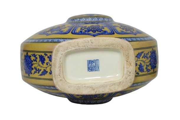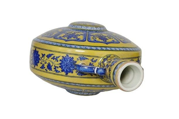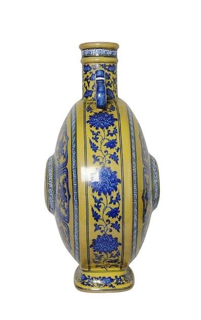 Chinese Yellow and Blue Porcelain Vase, decorated with flowers. It was created by skilled craftsmen in traditional style with fine handcrafts. the handwork is very fine with incredible detailling. This is a great piece of valuable collection, a valuable personal alter or a very good present. Don't miss out this chance to get it .Good luck to you!