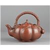 Chinese Yixing pottery tea pot; in melon form; four-character mark on base; L: 16 cm, W: 11 cm, H: 12 cm