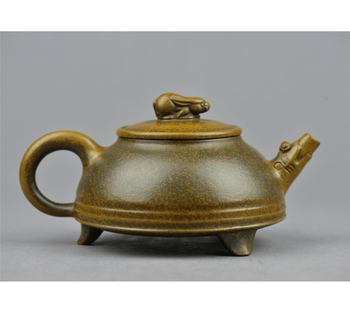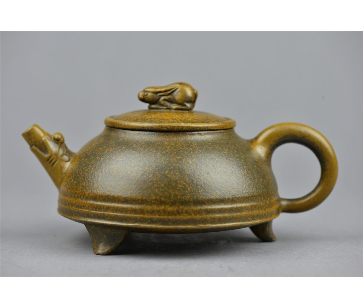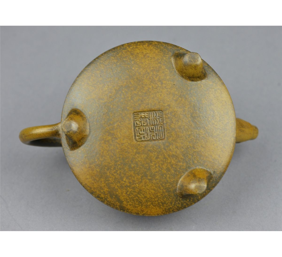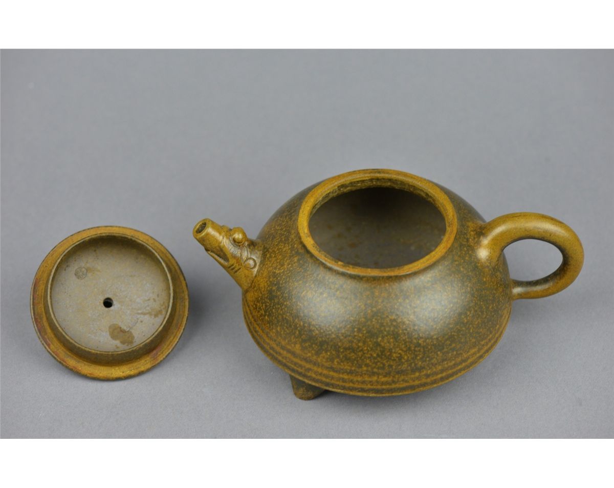 Chinese Yixing tea pot; signed with four-character script mark on base; L: 16 cm, D: 11 cm, H: 6.75 cm
