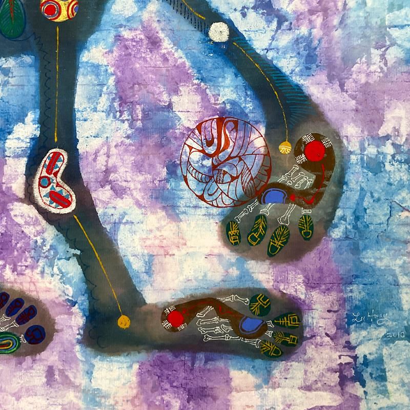 "Chinese Zodiac - Metal Monkey" is an original mixed media painting on paper by Lu Hong, hand signed by the artist. This piece comes custom framed. Includes Letter of Authenticity. Measures approx. 31" x 31.5" (frame), 20" x 20" (image).