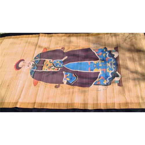 Chinese ancestor gouache painting on paper scroll. Size: 80" X 43" (204 X 109 cm.).