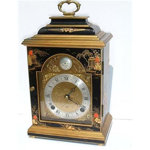 Chinese black lacquered chinvoiserie chiming bracket clock
