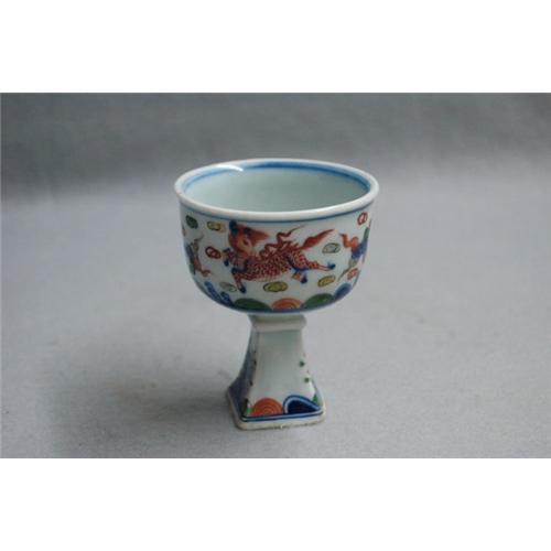 Chinese blue and white with wu-cai porcelain cup. good condition.