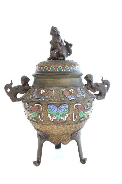 Chinese bronze & champleve incense burner