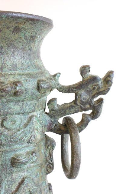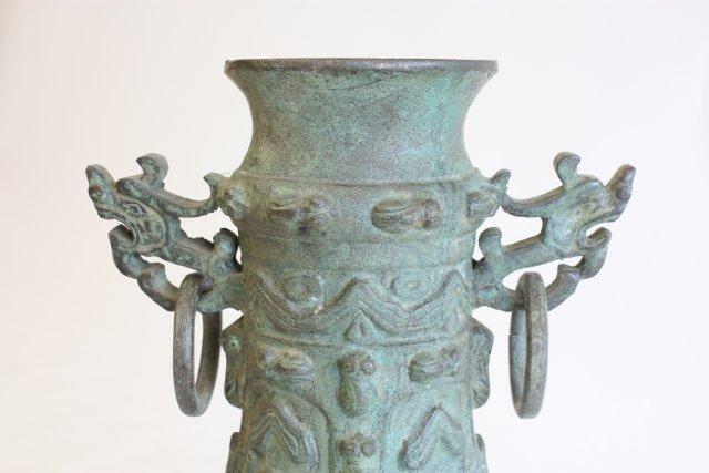 Dragon face handles with rings, bottom missing. Approx. 13.5" H. Please read our terms of sale.