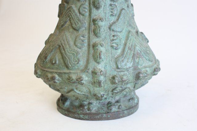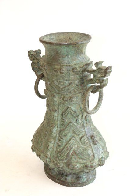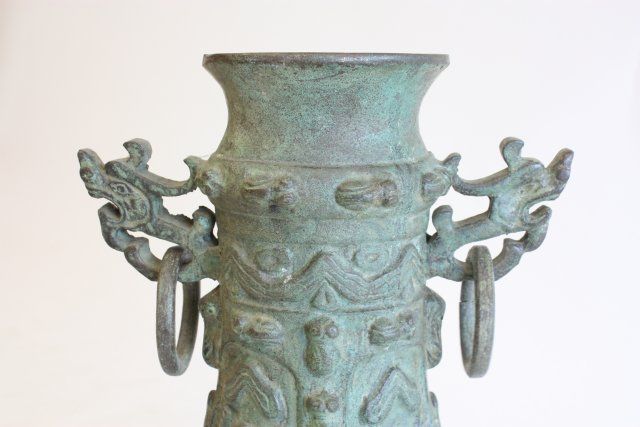 "Dragon Face" handles with rings, bottom missing. Approx. 13.5" H. Please read our terms of sale.