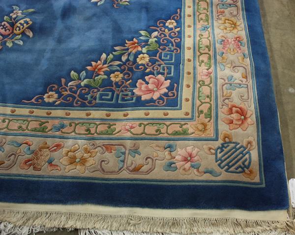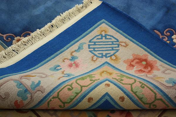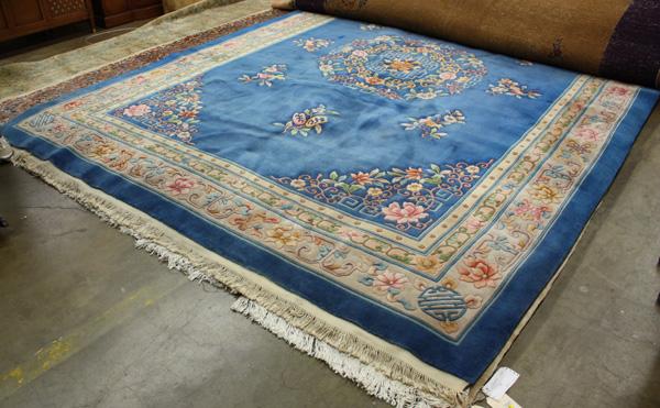 Chinese blue carpet, with Shou emblems, 10'2'' x 14'4''