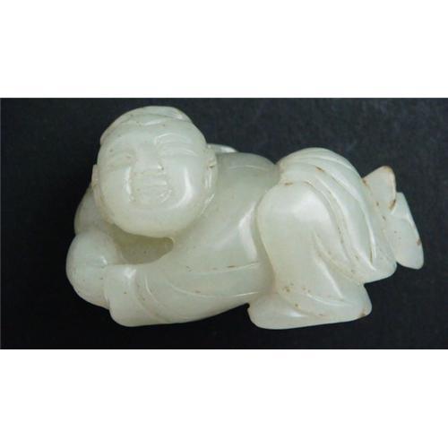 Chinese carved Celadon jade kid. very good conditico.