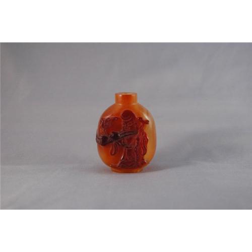 Chinese carved agate snuff bottle.decor with long life man as design. good condition with no cover.