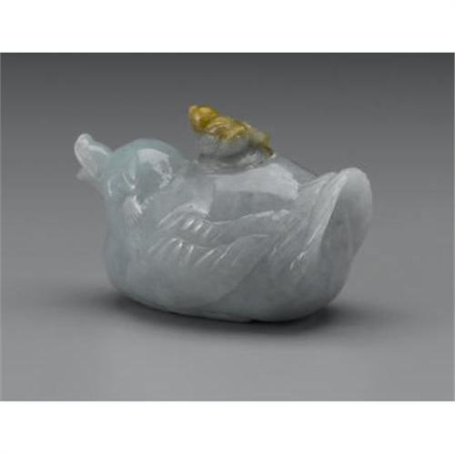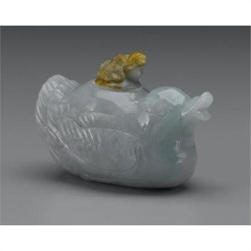 <B>Chinese Carved Jade/Hardstone Vessel<BR></B></I><BR>Chinese carved jade/hardstone vessel of a duck, cover with a smaller baby duck. Of pale green coloration with rust suffusion on cover<BR>4in. long<BR><BR> <B>Condition Report:</B> Normal signs of wear as appropriate with age.<BR><BR><b>Shipping:</b> Miscellaneous Collectibles, Larg (<a target="_blank" href="http://www.heritageauctions.com/common/shipping.php">view shipping information</a>)