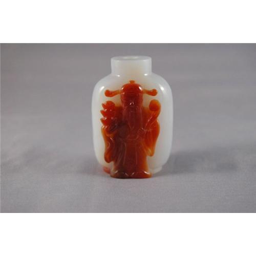 Chinese carved agate snuff bottle.decor with rich man as design. good condition with no cover.