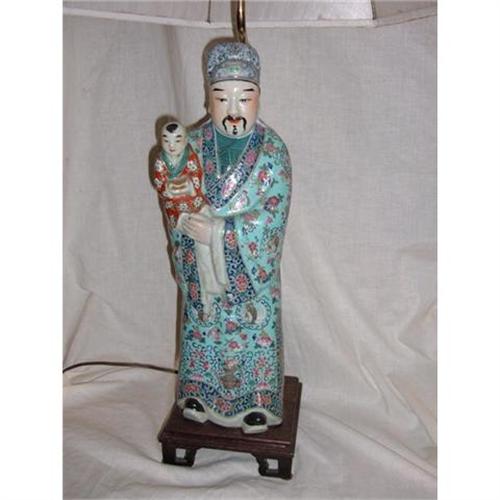 A table lamp mounted with a Chinese export porcelain figurine of a Mandarin and child.