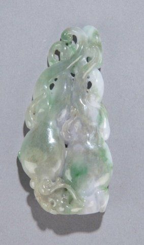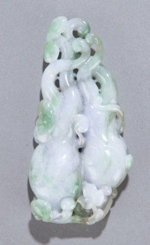 Chinese lavender and green jade carving of buddha hard fruit with ling zhi. 20th century. 3 1/2"h x 1 3/4"w.