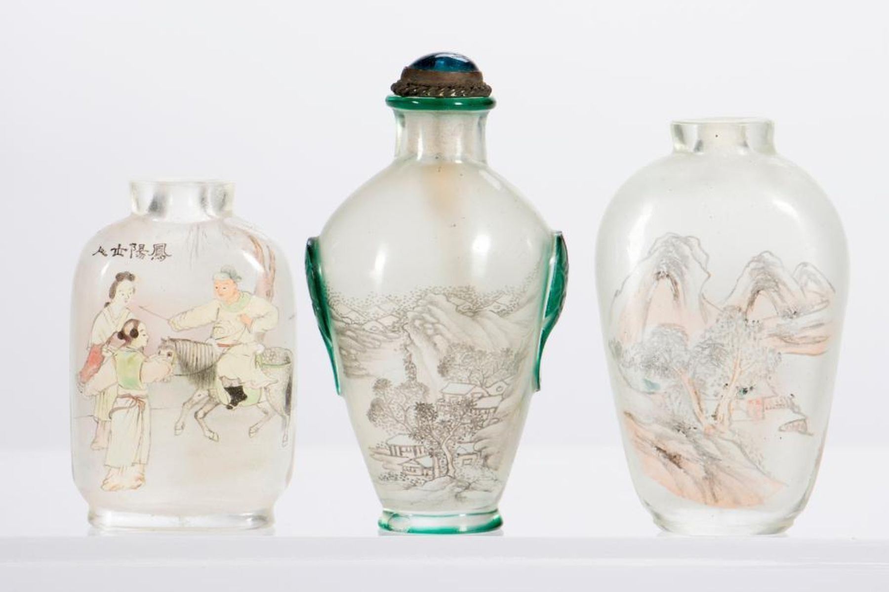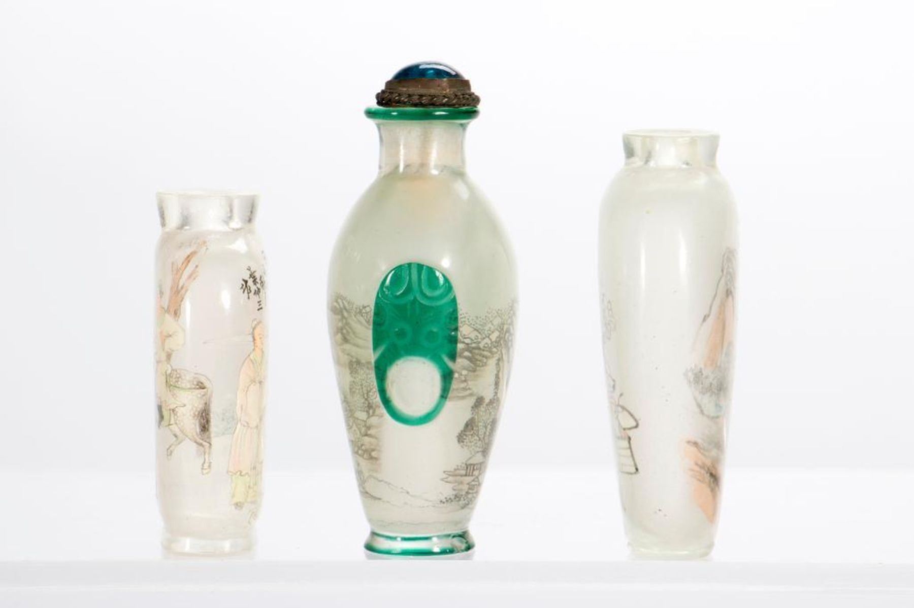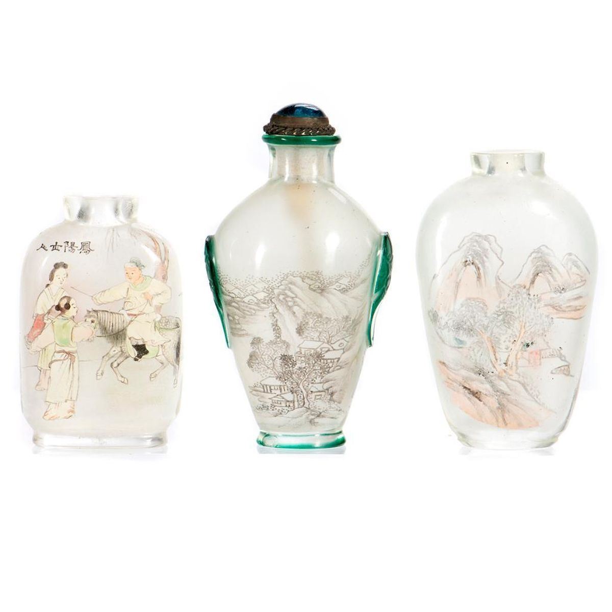 Three first-quarter 20th-century Chinese painted snuff bottles, 3 inches in height largest example