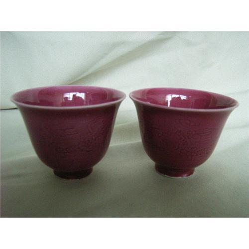 A pair of rare and fine ruby-glazed 'dragon'cups, seal mark and period of GUANGXU.